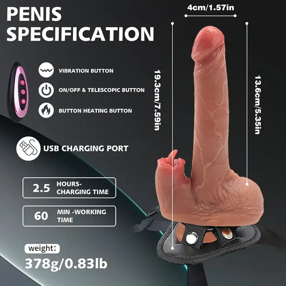 7.59in Automatic Vibrating Telescopic Heating Automatic Strap on Dildo