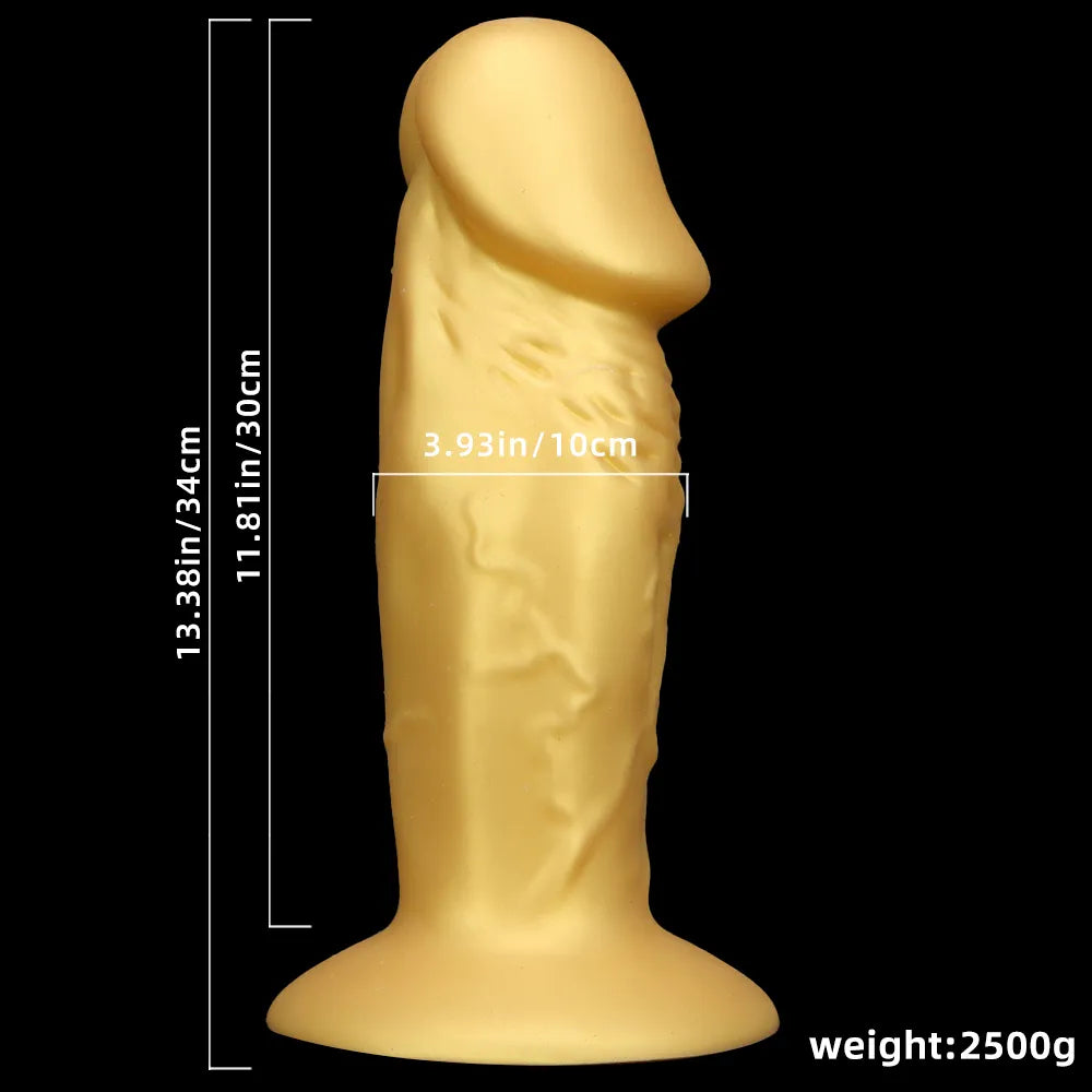 13.38in Super Long Big Silicone Soft Gold Dildo With Suction Cup