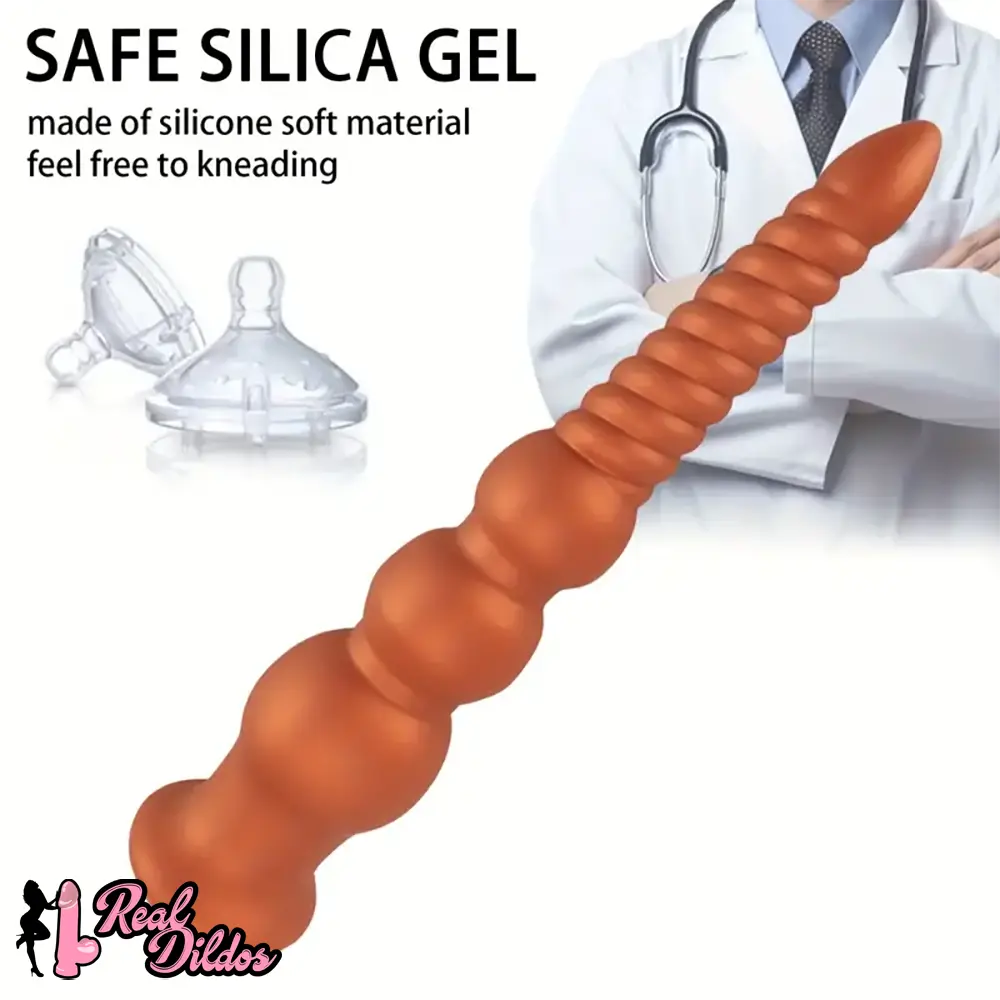 9.45in 11.4in 13.2in Big Silicone Soft Anal Plug Dildo With Anal Beads