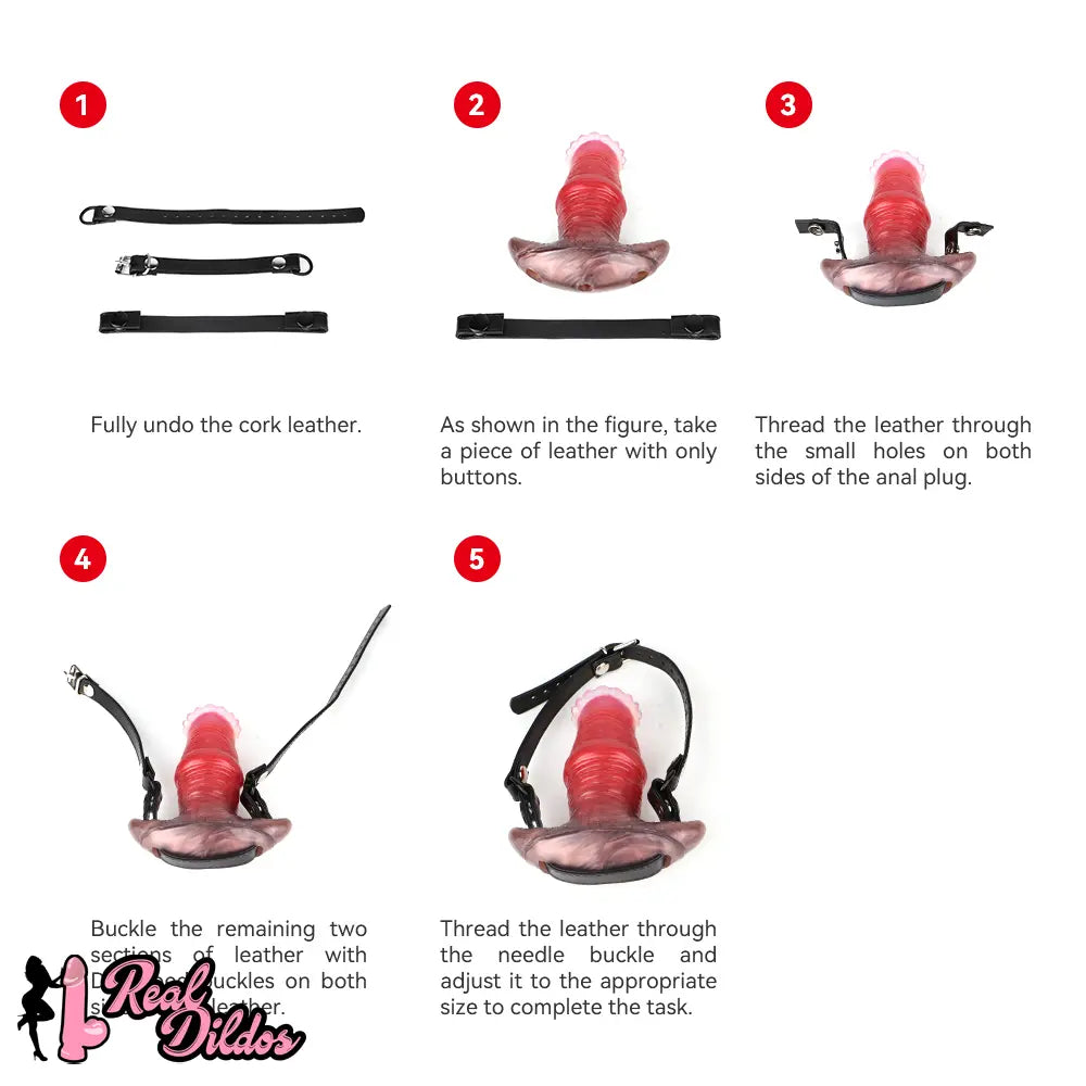 2.91in-8.85in Horse Cock Wearable Gag Fox Tail Vibrator Anchor Dildo
