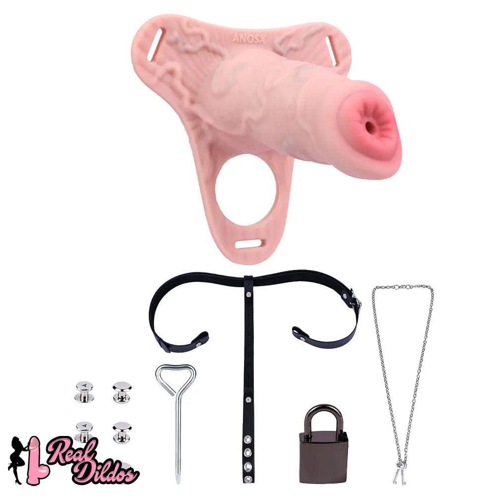 4.92in Silicone Animal Cock Cage Strap on Chastity Dildo Lock Cock Ring
