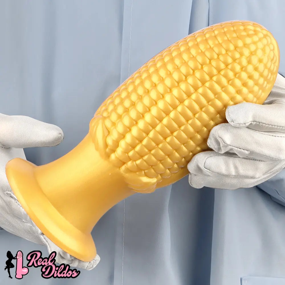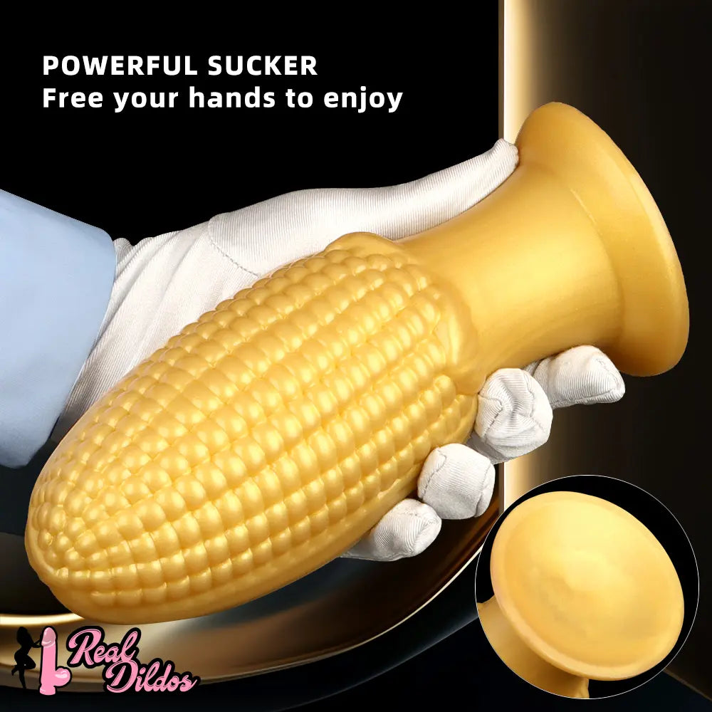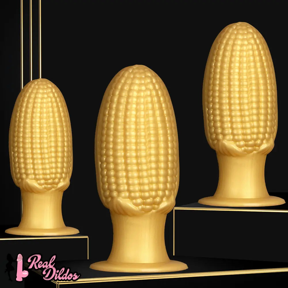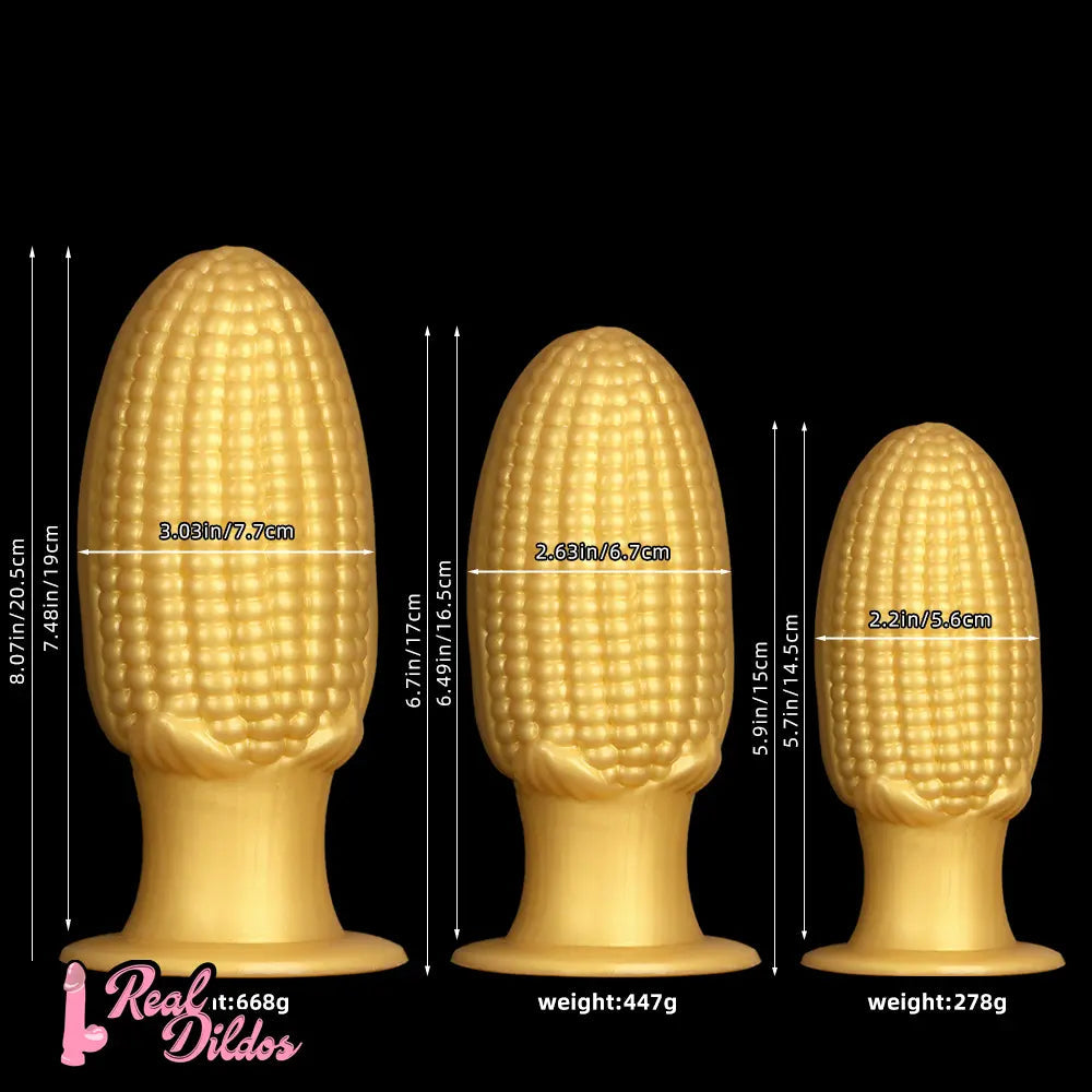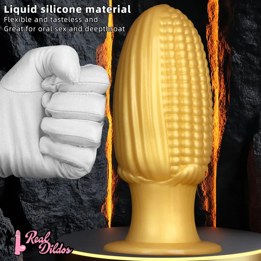5.9in 6.7in 8.07in Liquid Silicone Thread Granules Soft Corn Gold Dildo