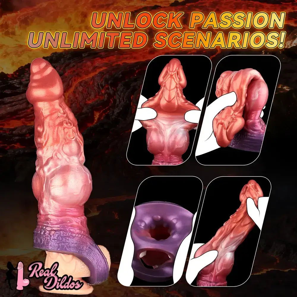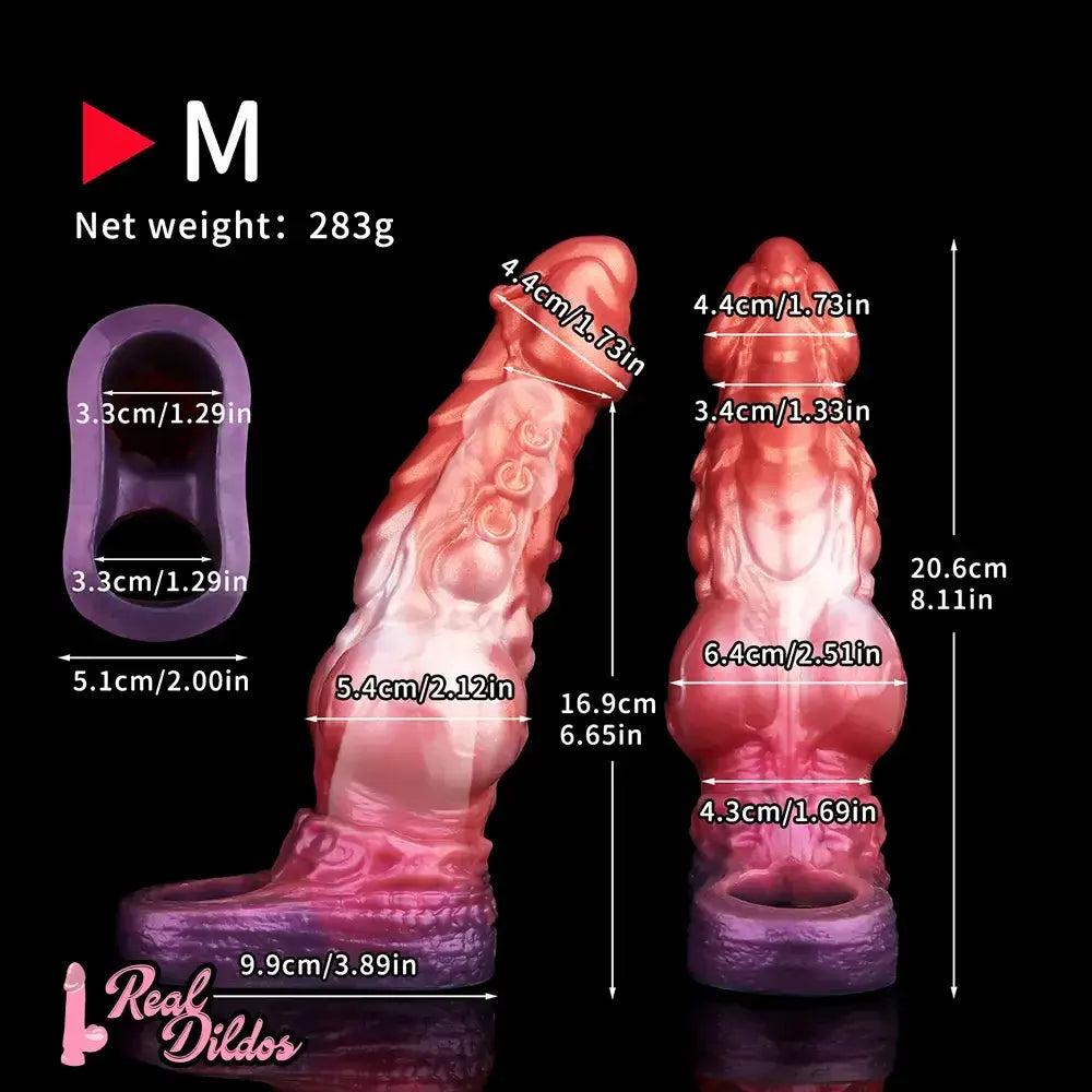 6.85in 8.11in 9.84in Dragon Monster Knot Silicone Dildo Sleeve Sheath