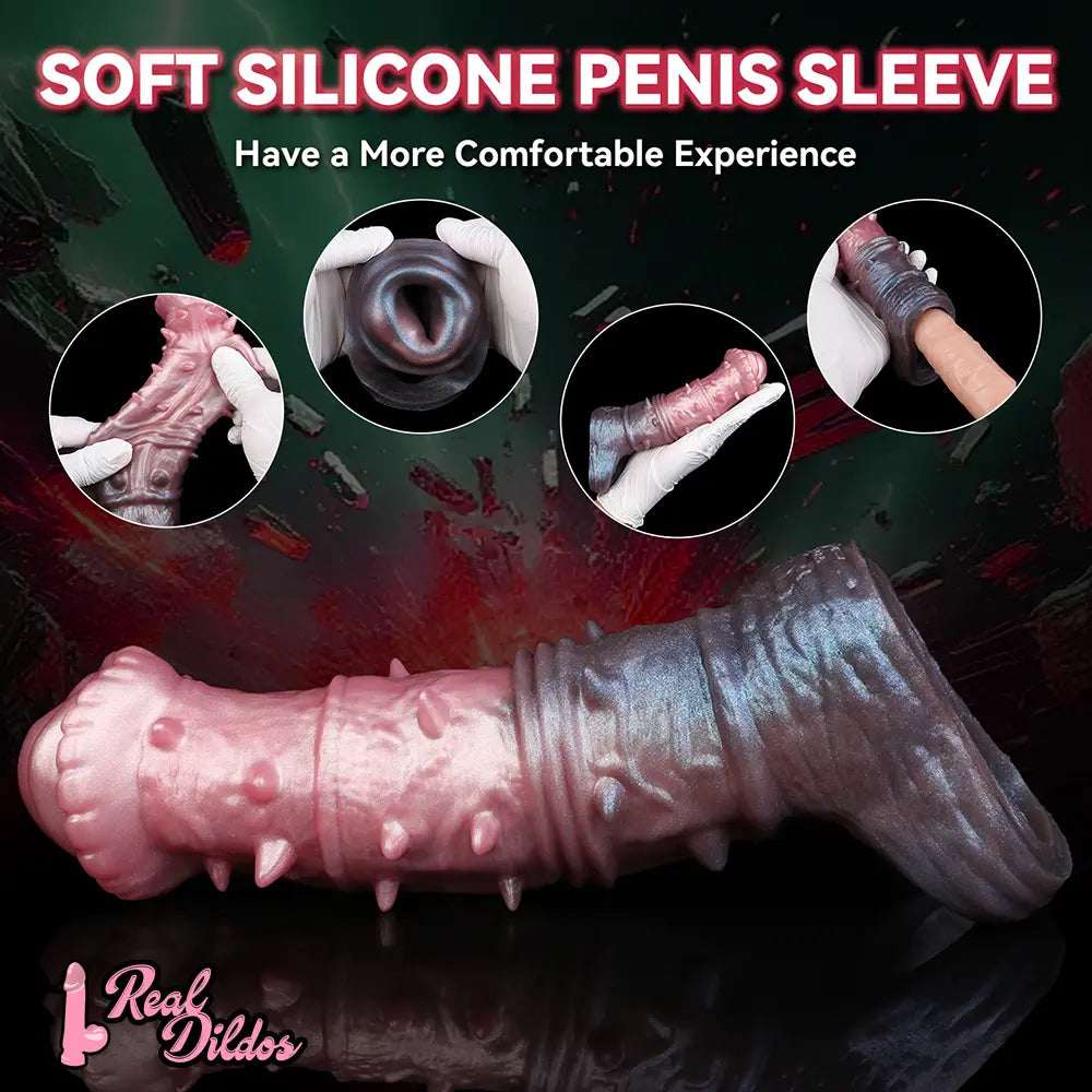 7.48in Spiked Horse Cock Sleeve Dildo Fantasy Penis Extender Sex Toy