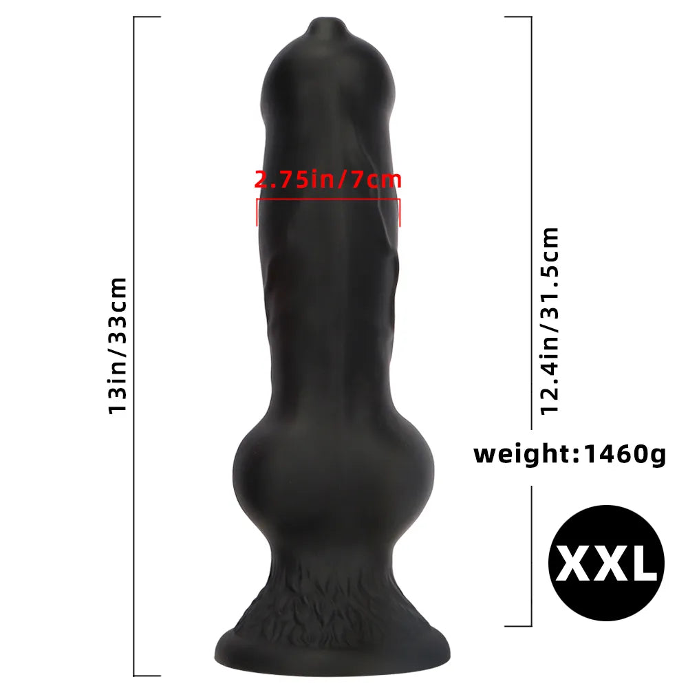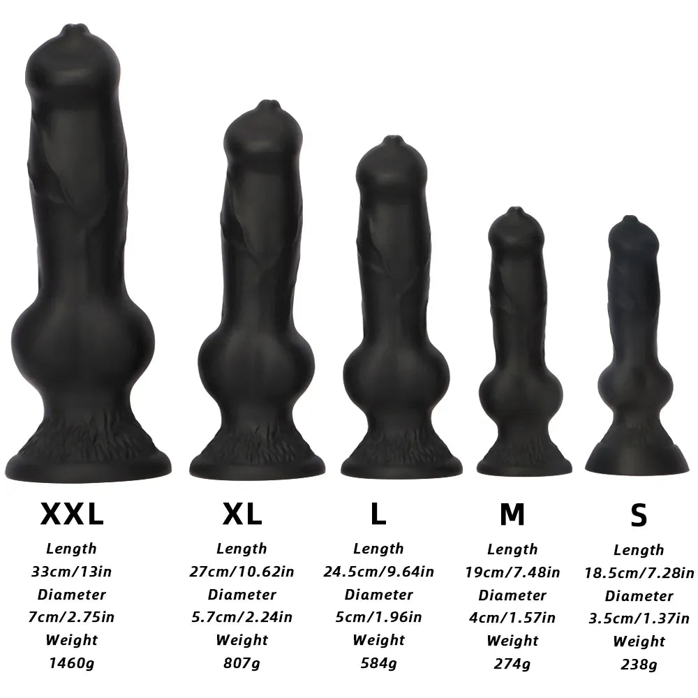 7.28in 7.48in 9.64in 10.62in 13in Big Black Silicone Dog Cock Dildo