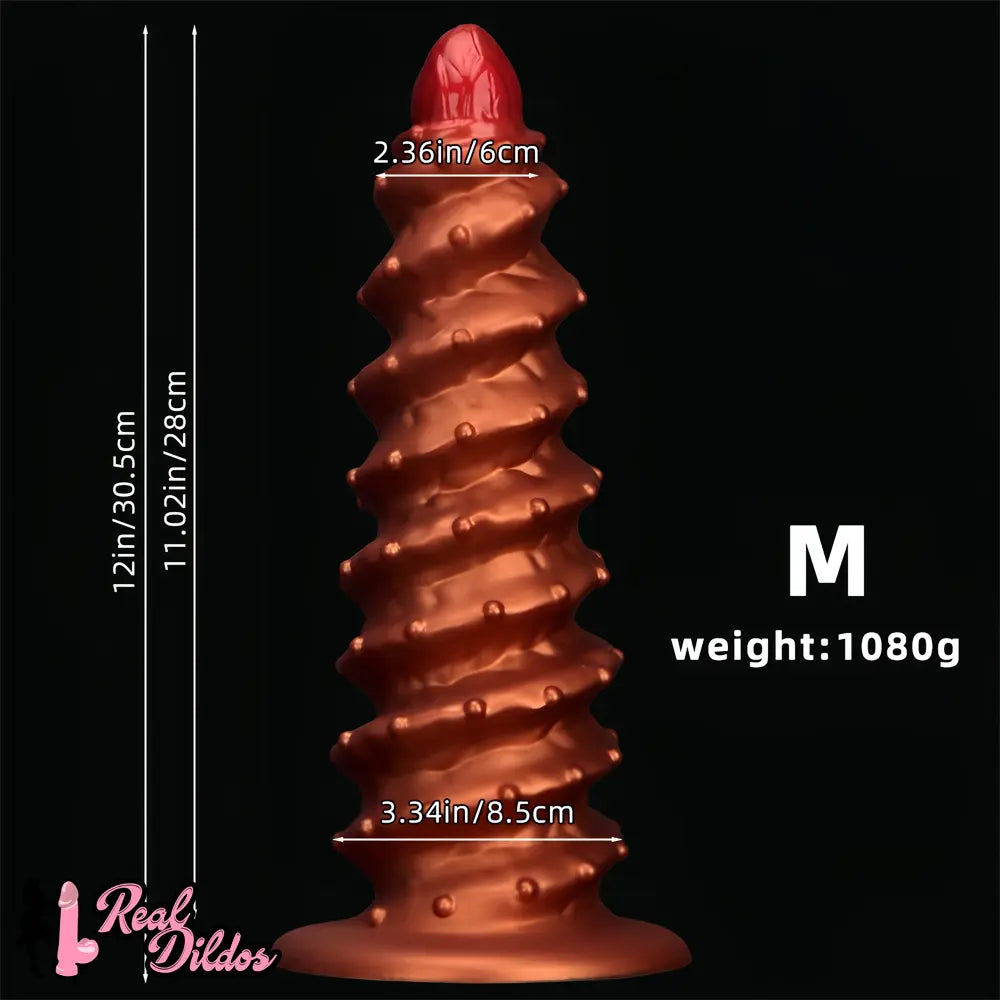 10.43in 12in 14.17in Extra-Large Long Threaded Silicone Sharp Head Dildo
