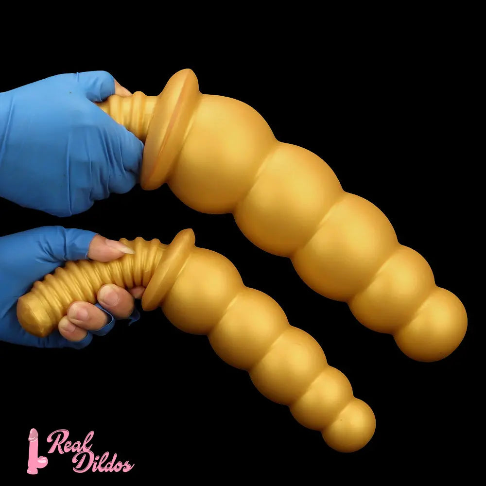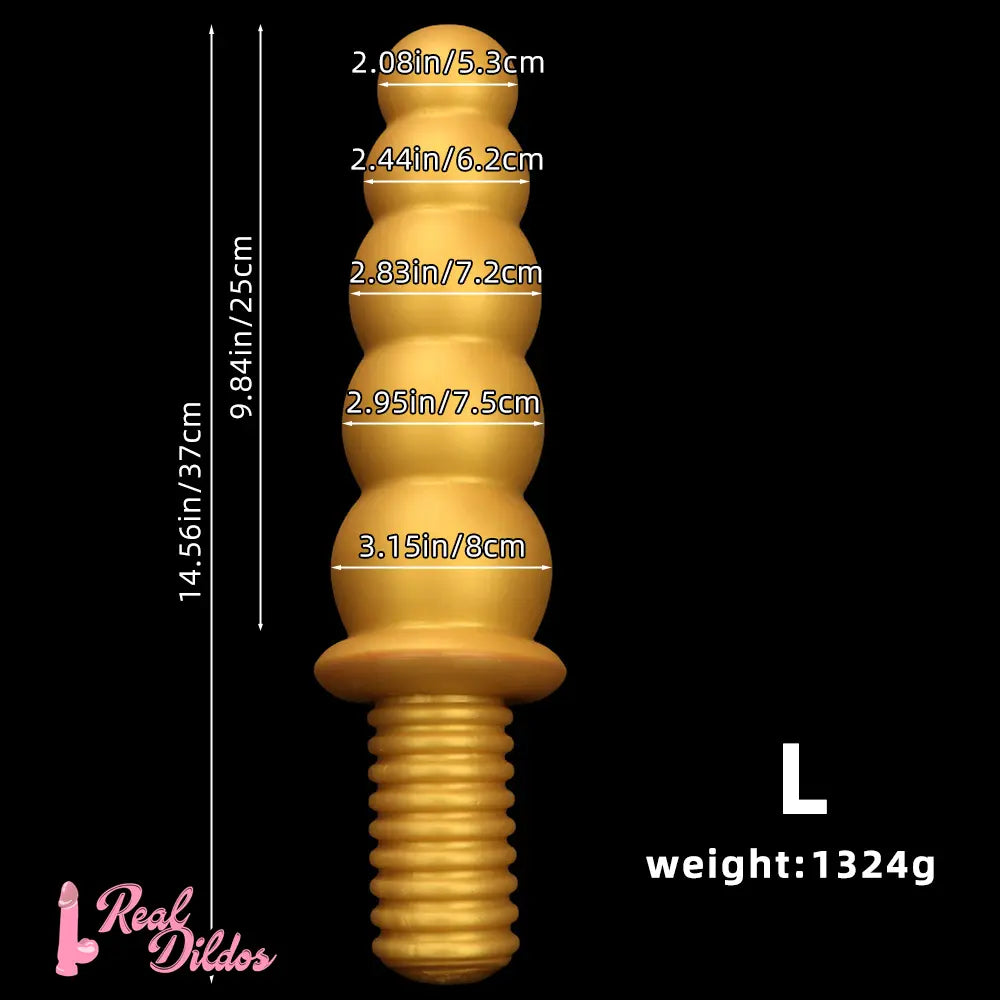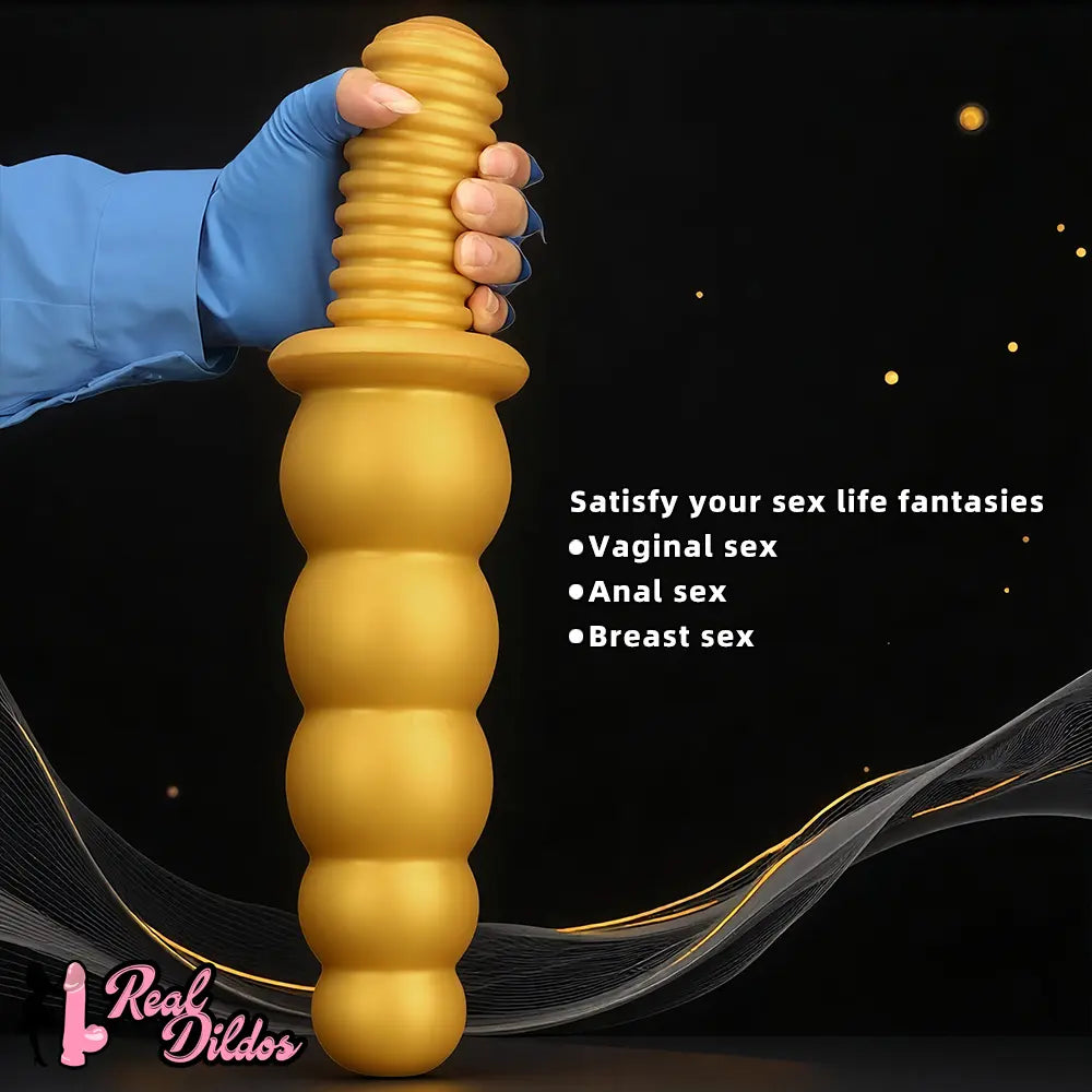 10.62in 14.56in Gold Silicone Anal Plug Dildo With Handle For Love