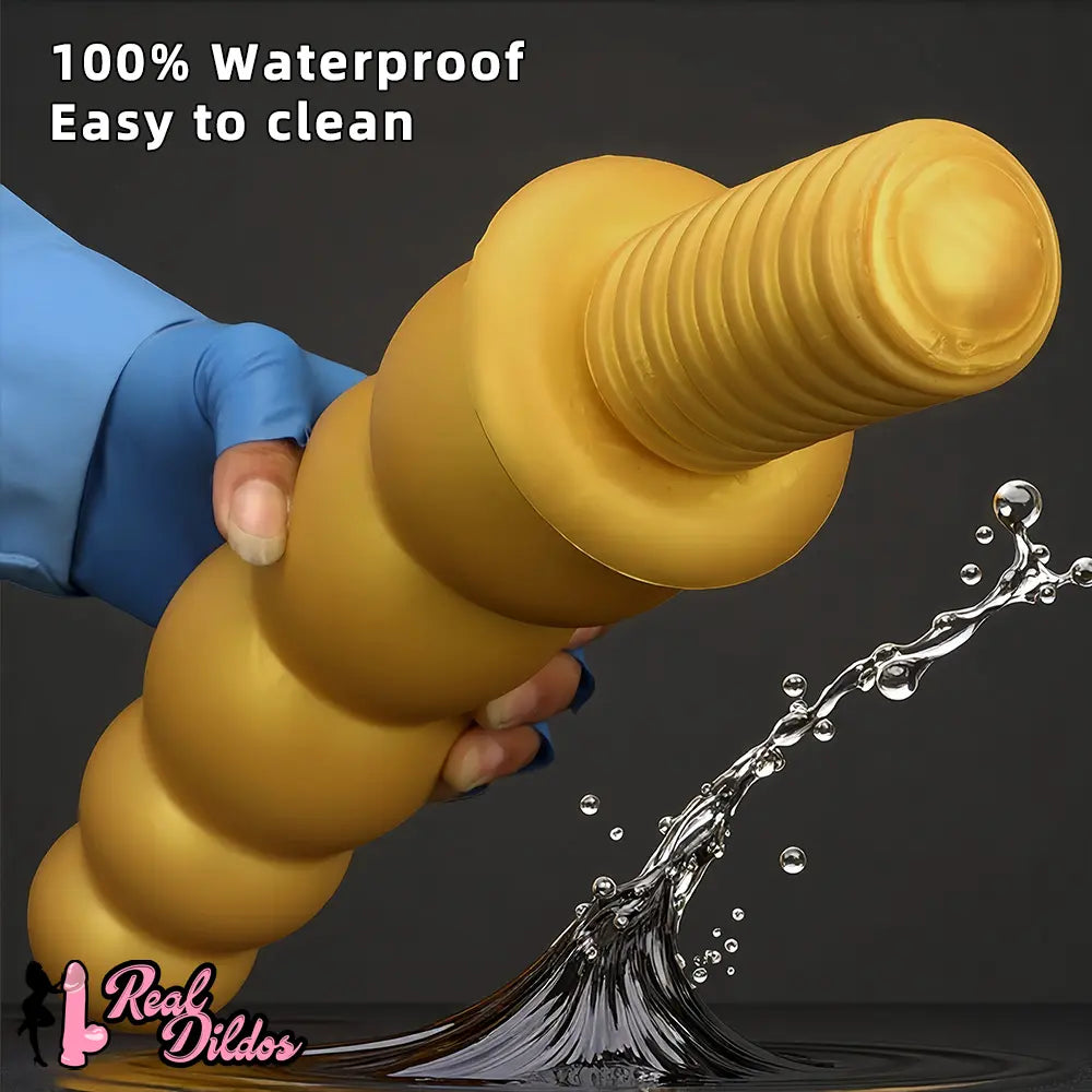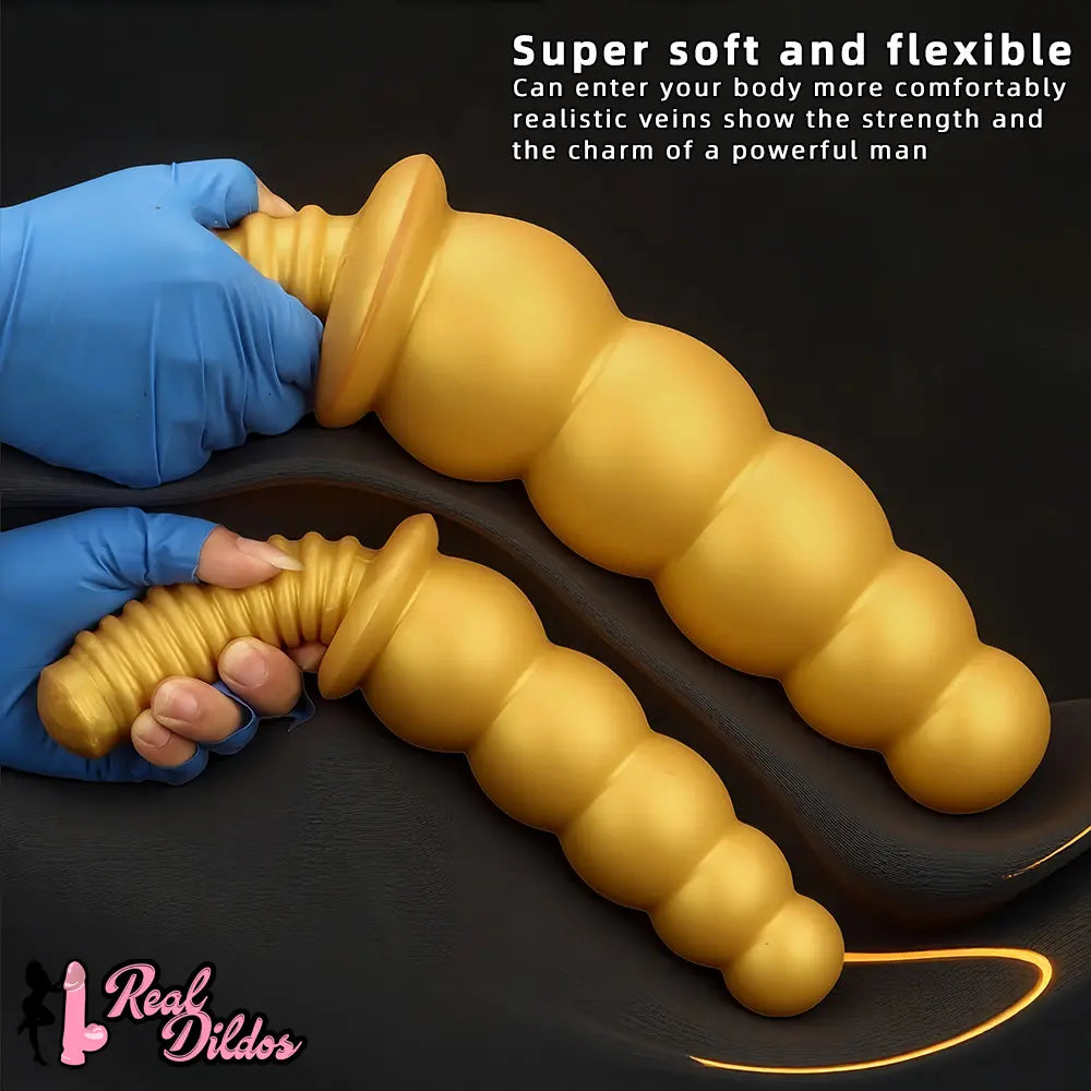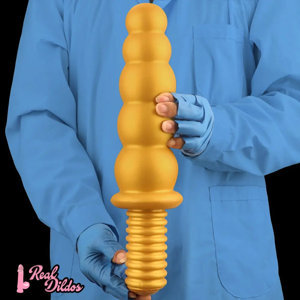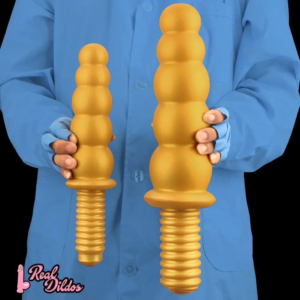 10.62in 14.56in Gold Silicone Anal Plug Dildo With Handle For Love