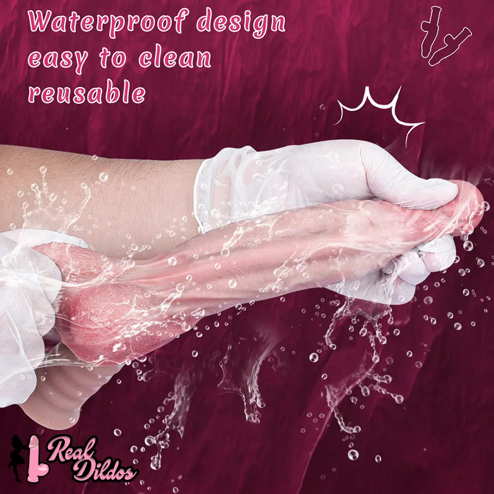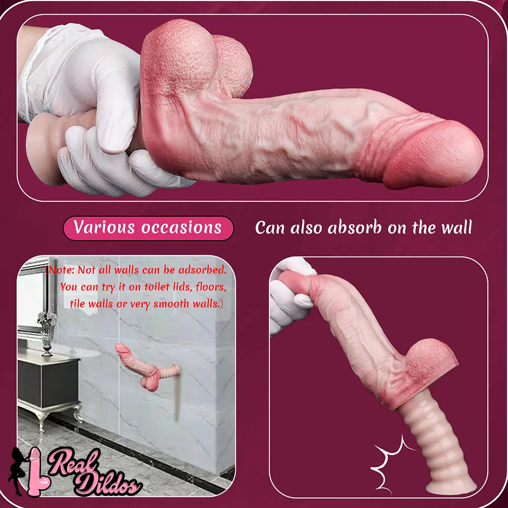 10.9in Real Feeling Double Layer Silicone Soft Handle Dildo For Expansion