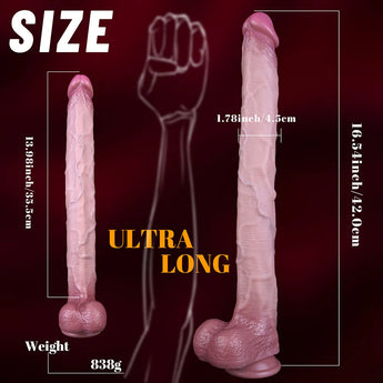 16.54in Extra-long Dual-Density Liquid Silicone Soft Huge Female Dildo