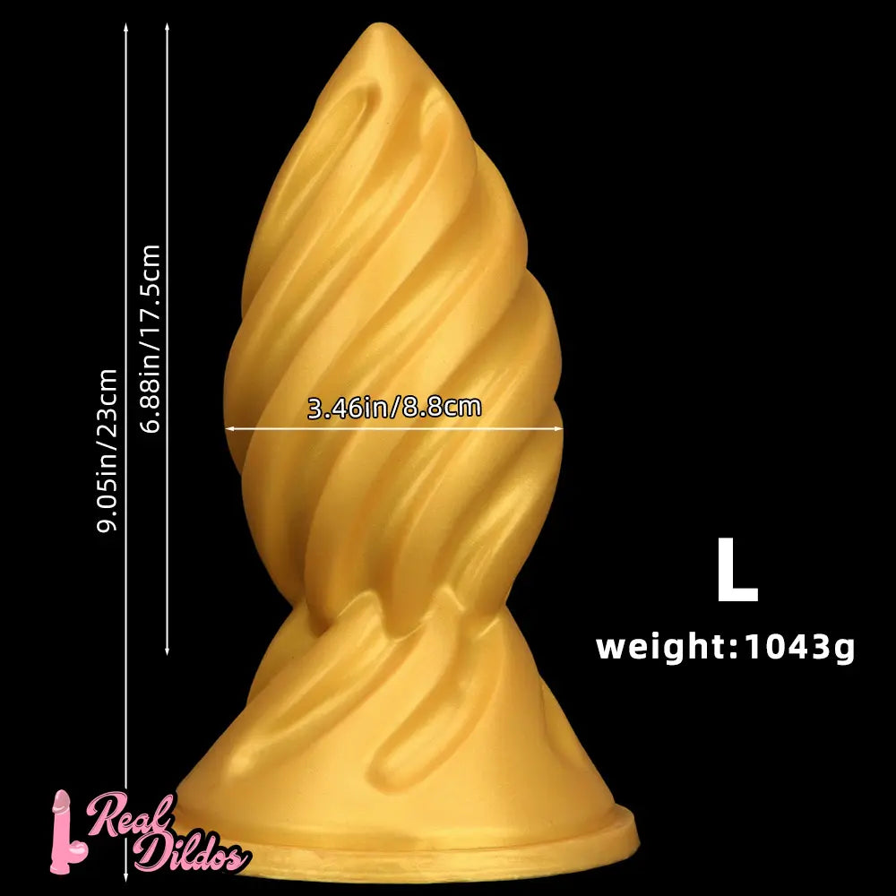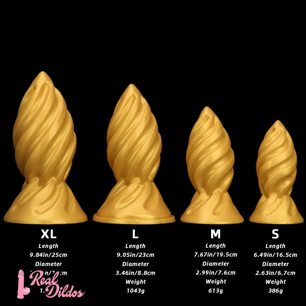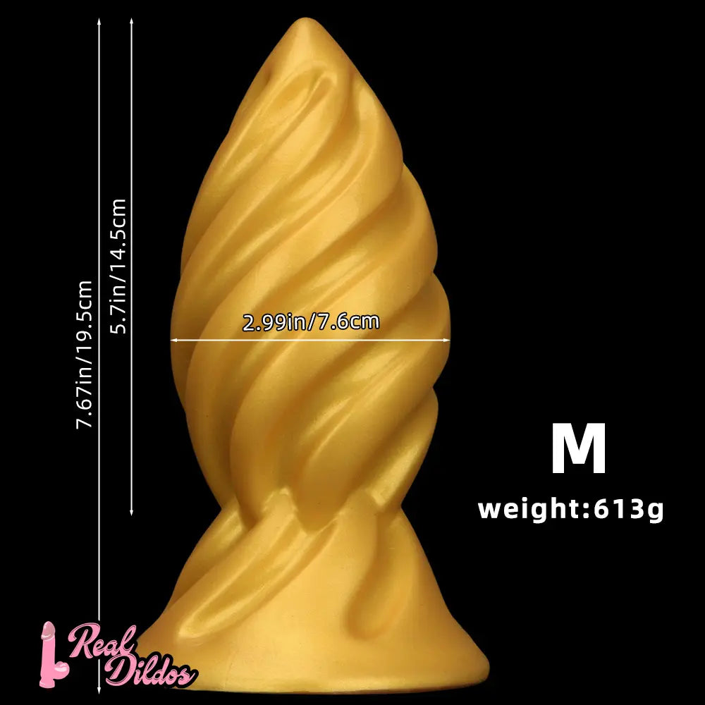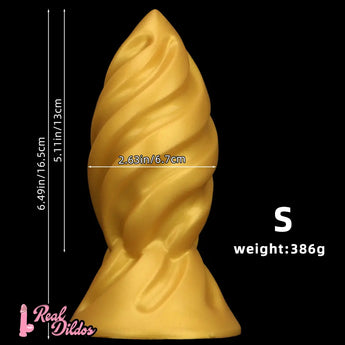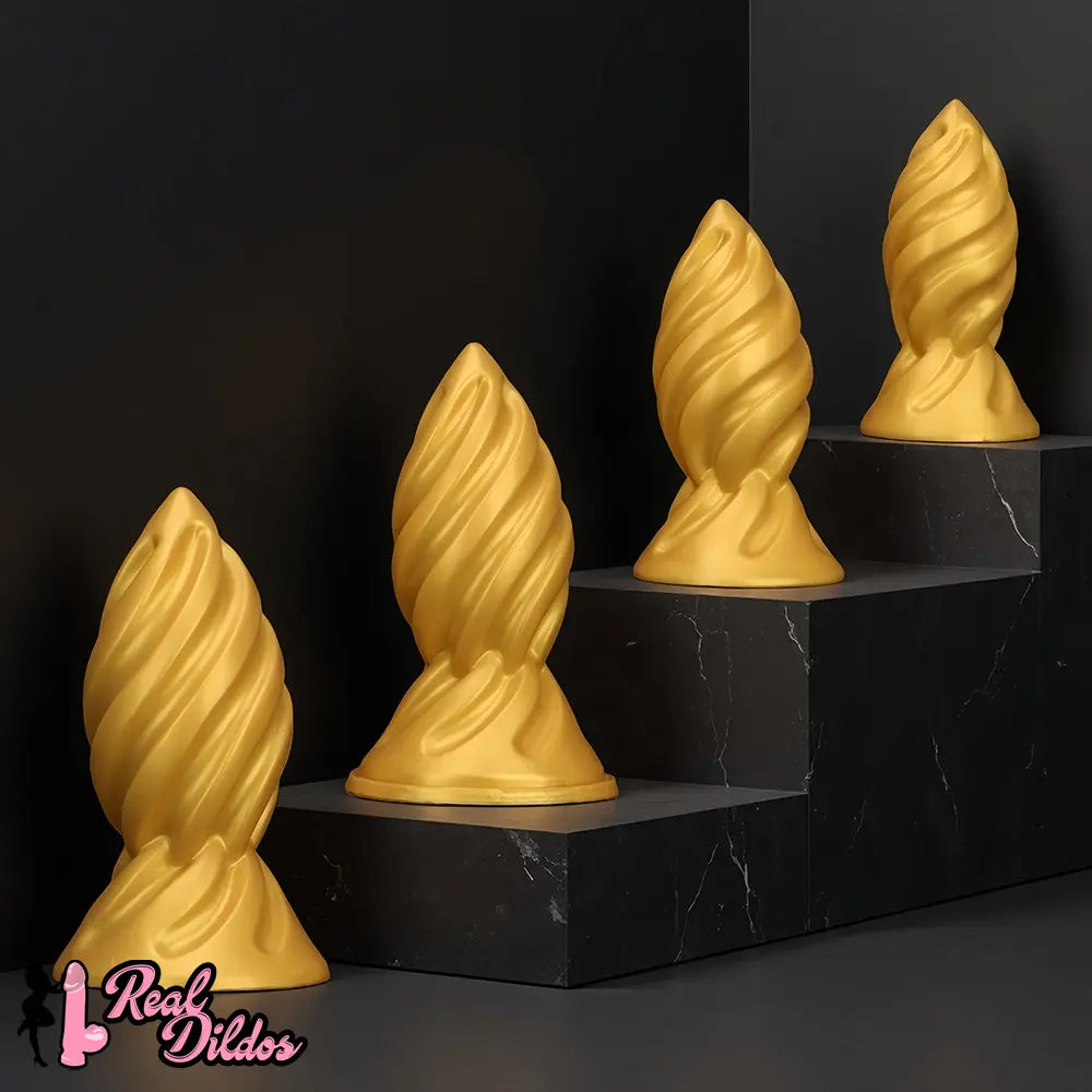 6.49in 7.67in 9.05in 9.84in Golden Silicone Spiral Thread Masturbation Dildo