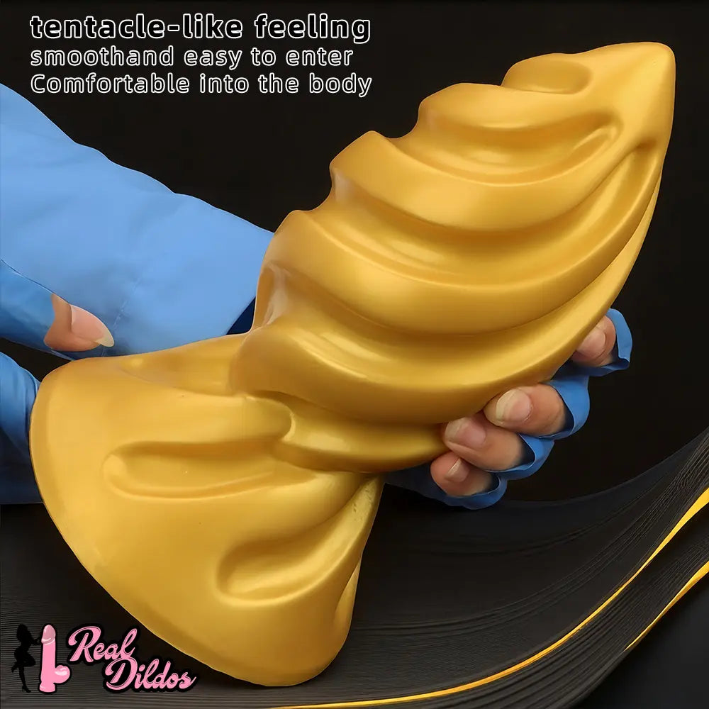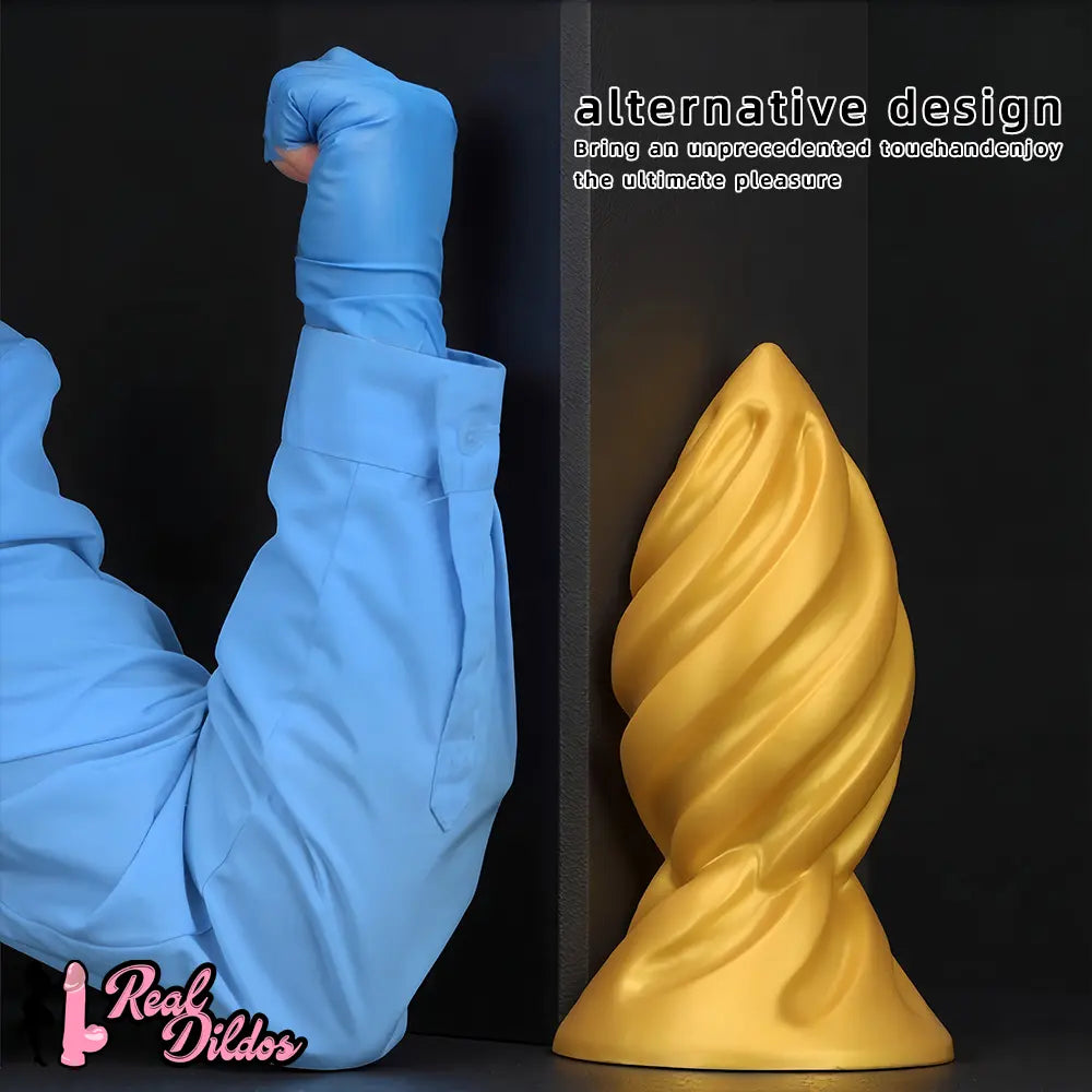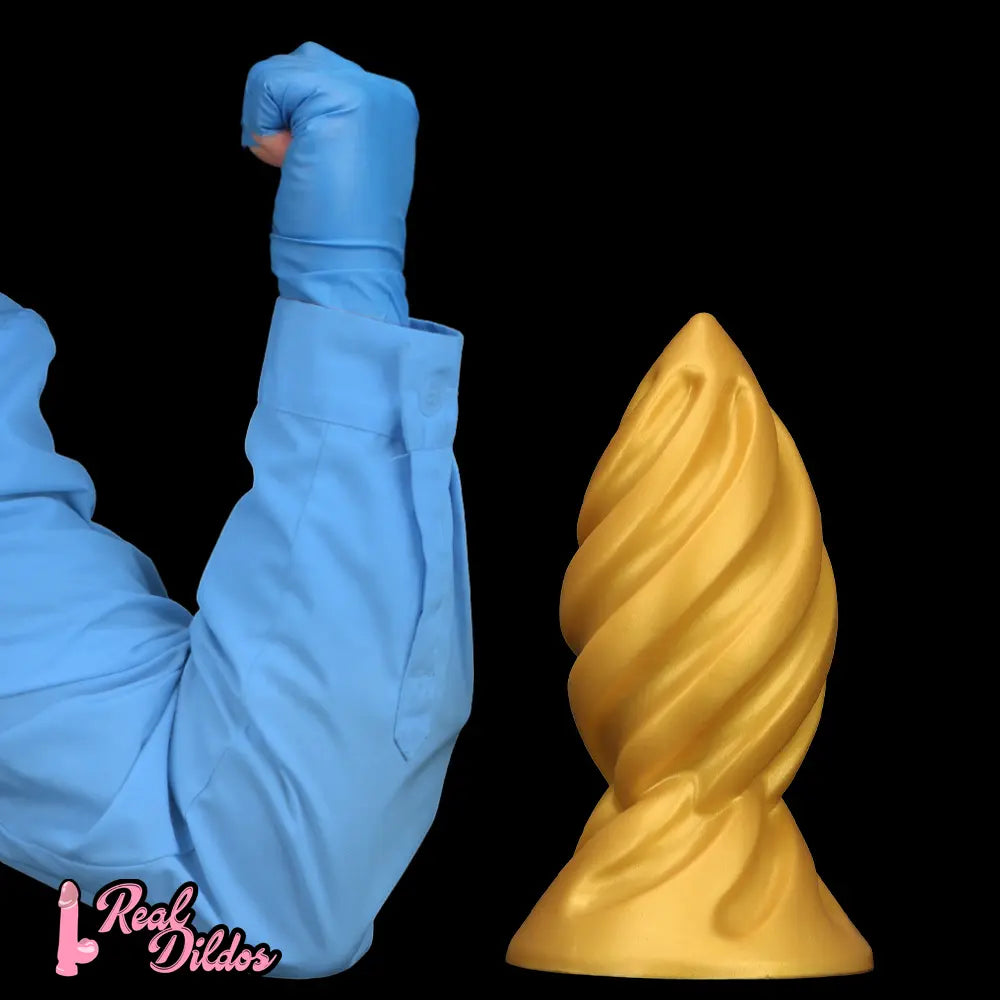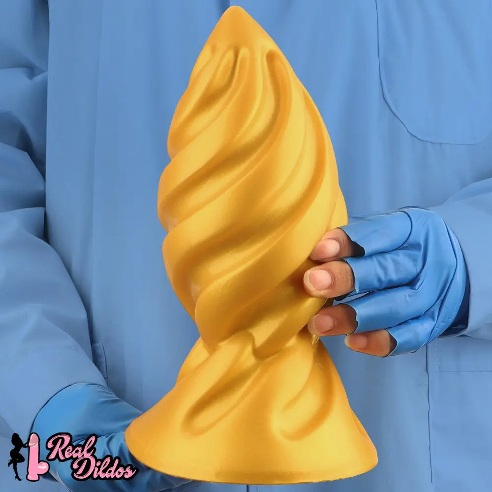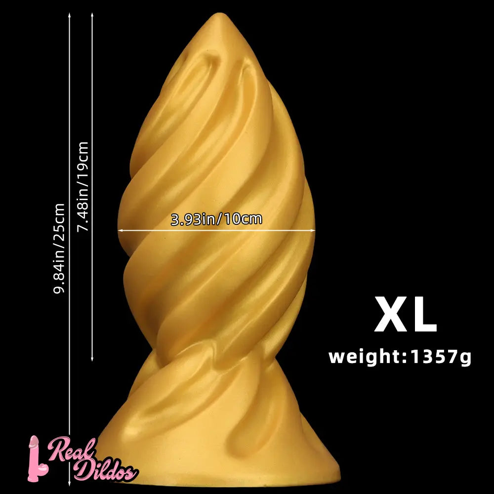 6.49in 7.67in 9.05in 9.84in Golden Silicone Spiral Thread Masturbation Dildo