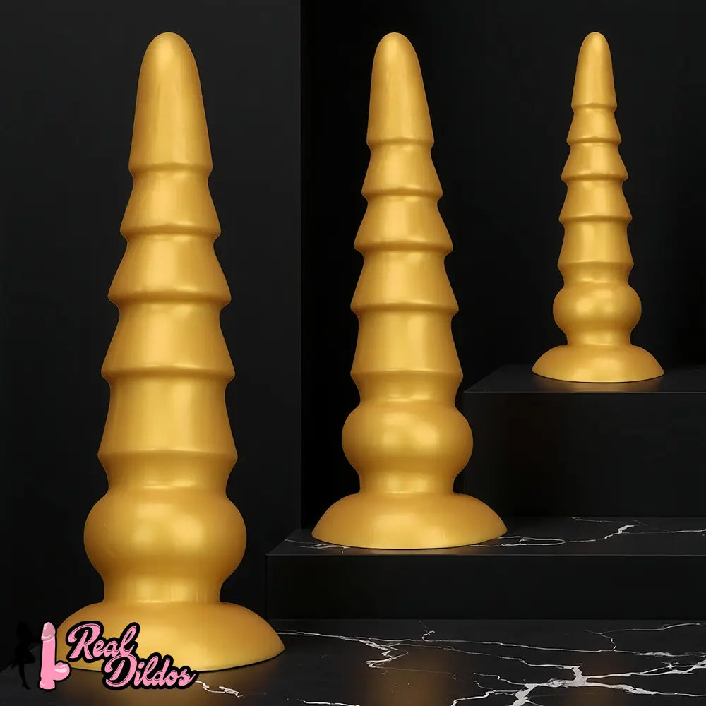7.87in 11.41in 14.17in Golden Silicone Soft Anal Plug Dildo For Intimacy