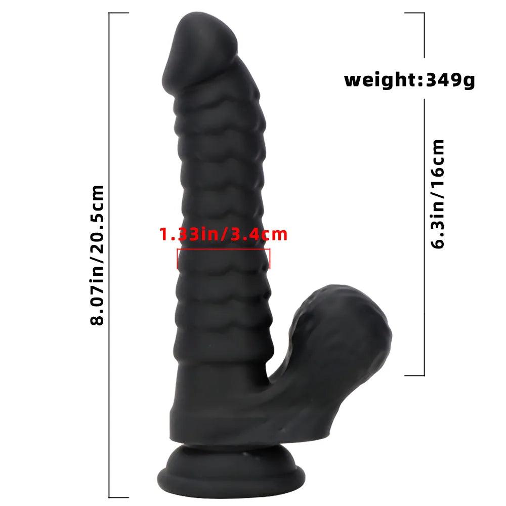 8.07in Big Black Fantasy Double Layer Silicone Soft Scale Caterpillar Dildo