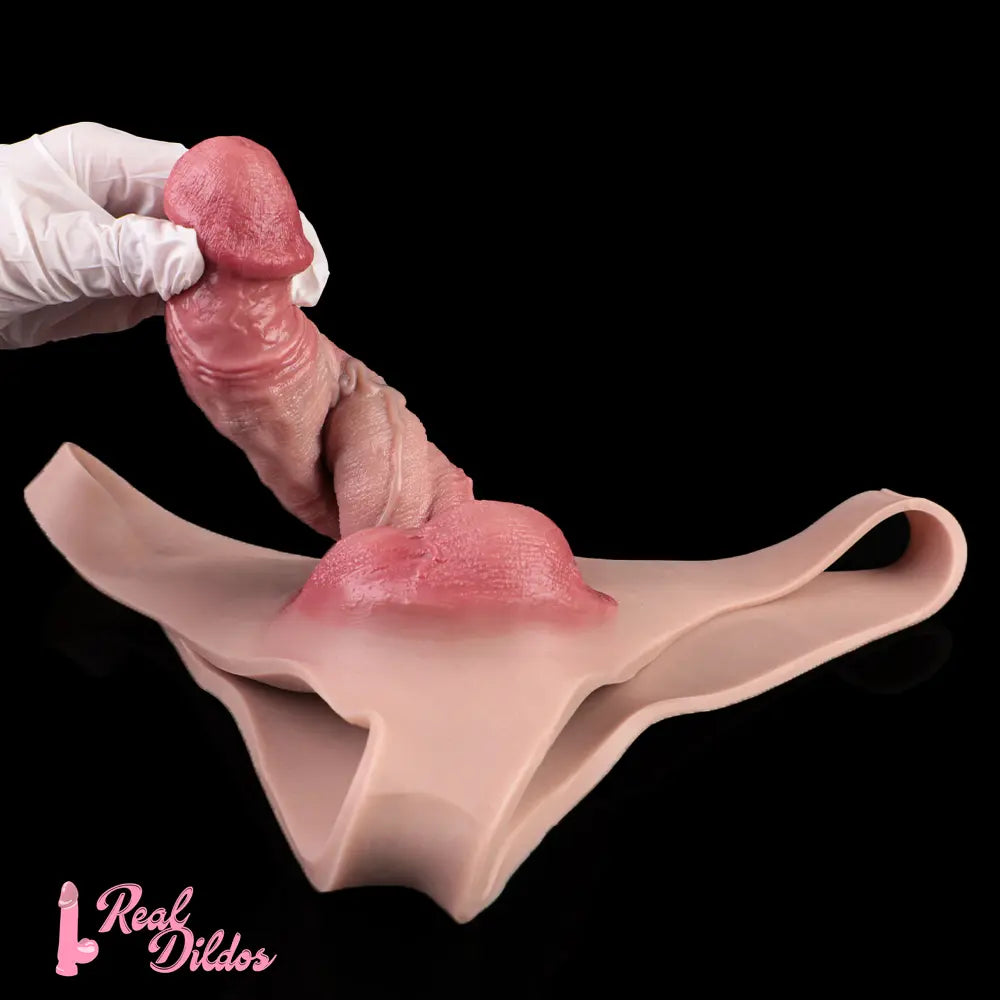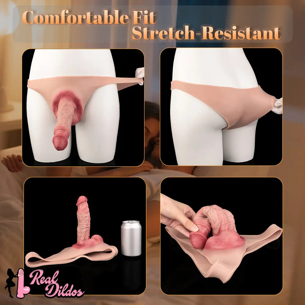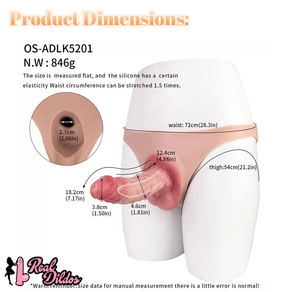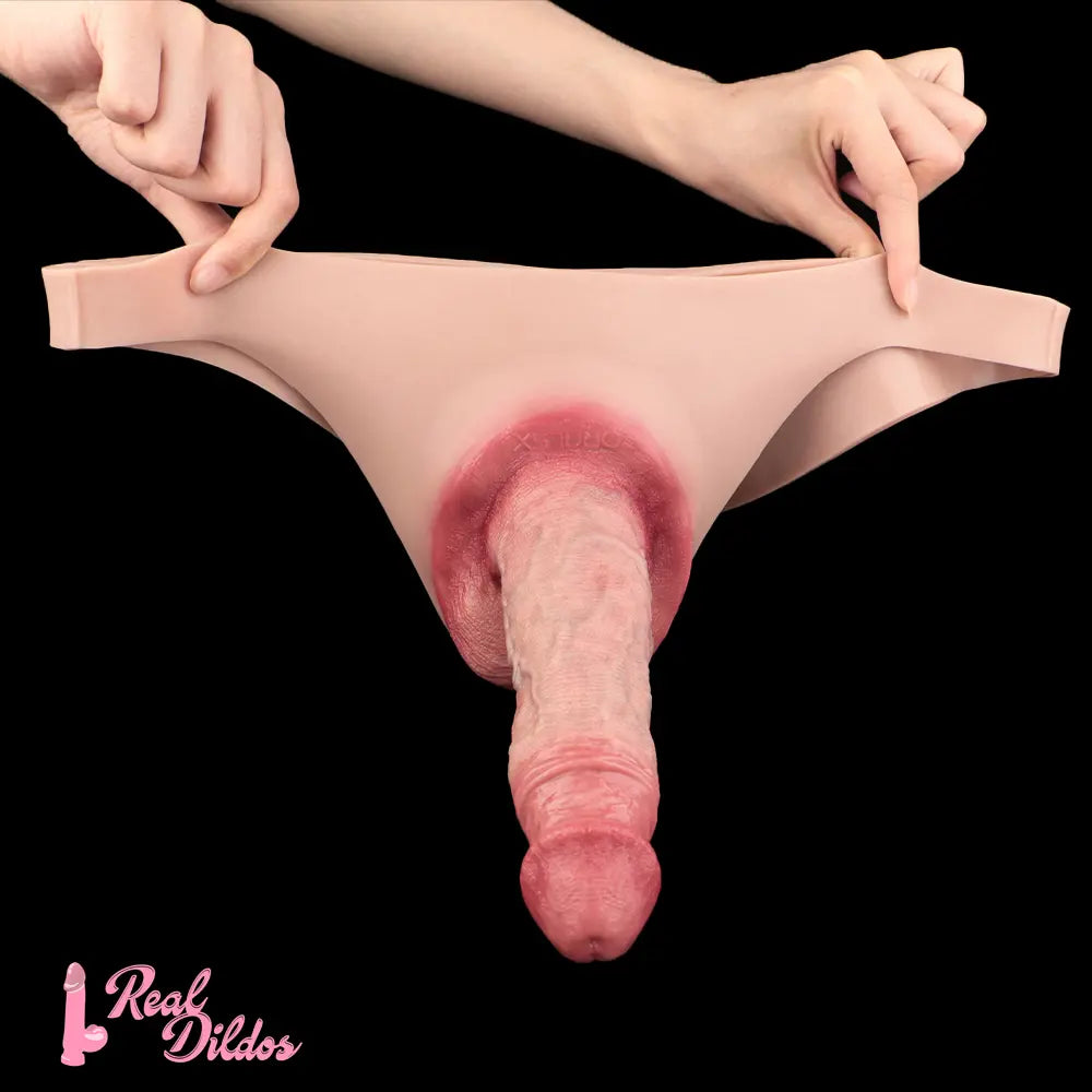 7.17in Hollow Penis Dildo Sleeve Silicone Soft Pants Male Female Masturbator