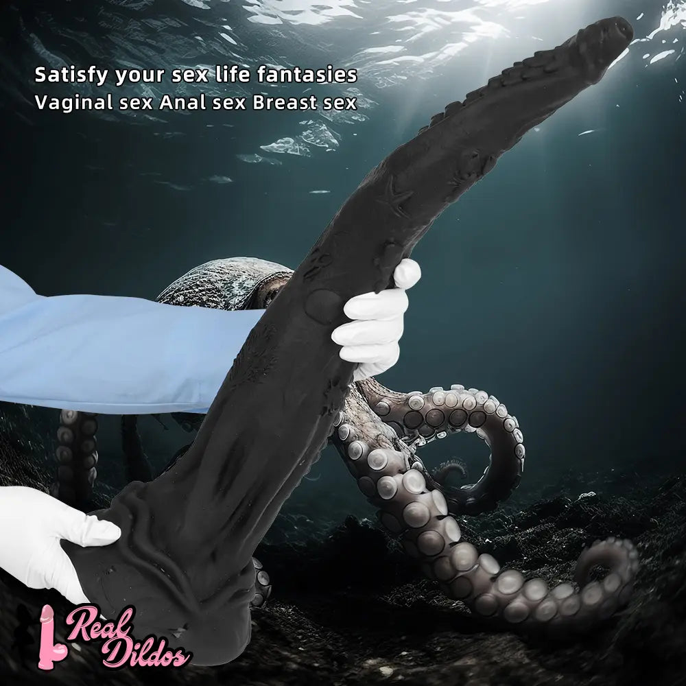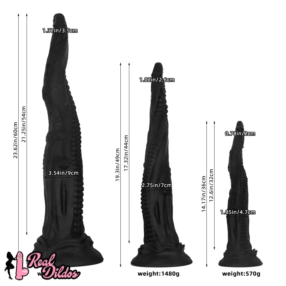 14.17in 19.3in 23.62in Long Huge Black Octopus Tentacle Silicone Soft Dildo