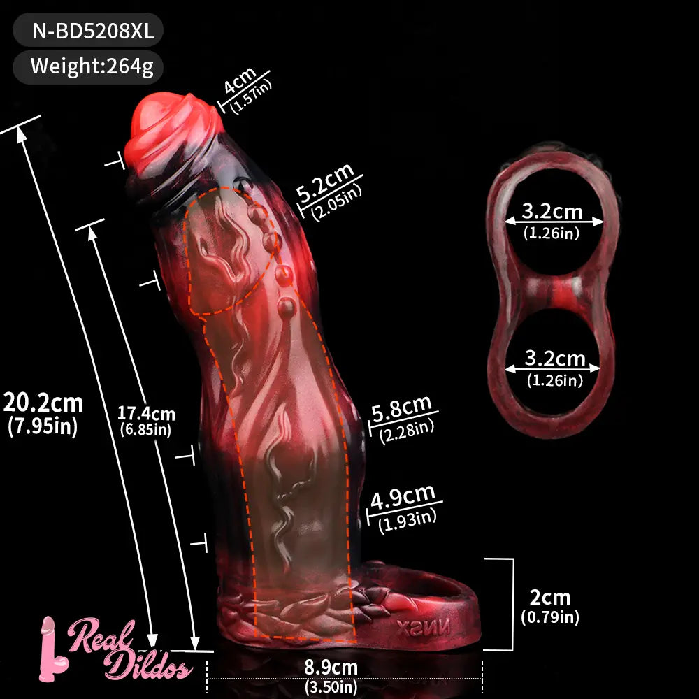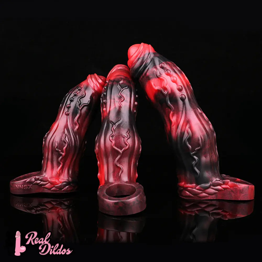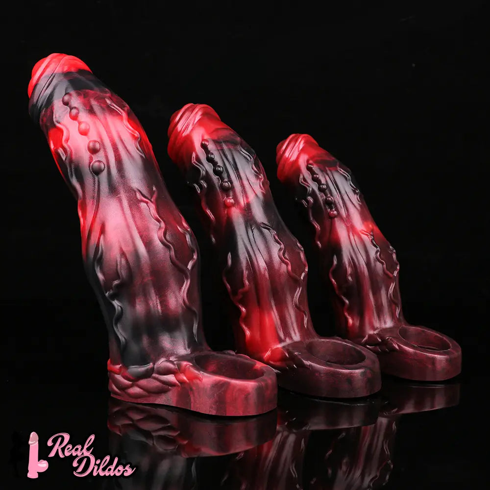 6.18in 6.85in 7.95in Uncut Dog Knot Spiked Soft Dildo Sleeve Cock Extender