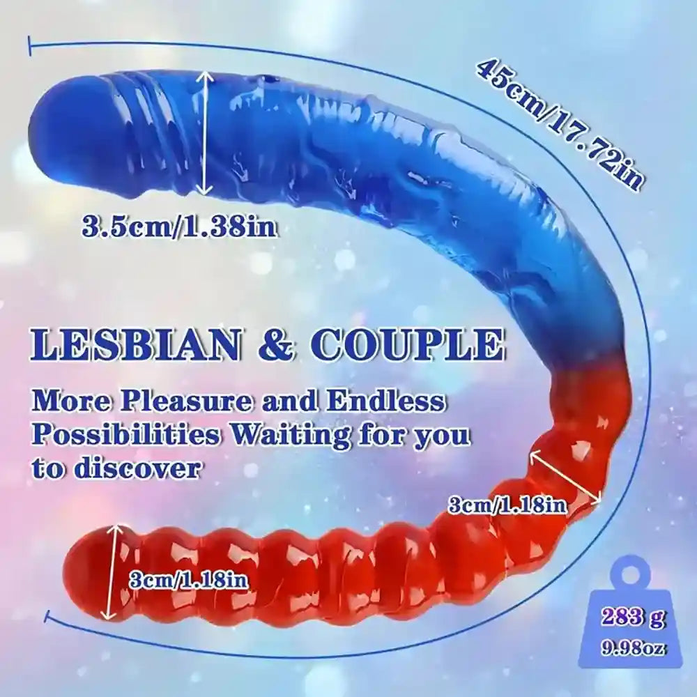 17.72in Real Look Double-headed Dildo Female Masturbator With Beads
