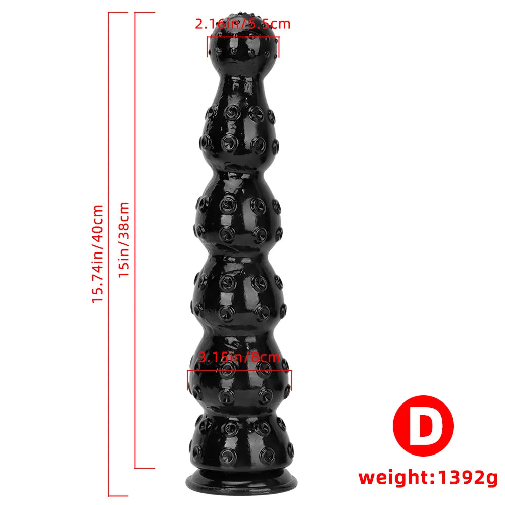 9.84in 13.38in 13.78in 15.74in Big Black Beads Butt Plug Dildo