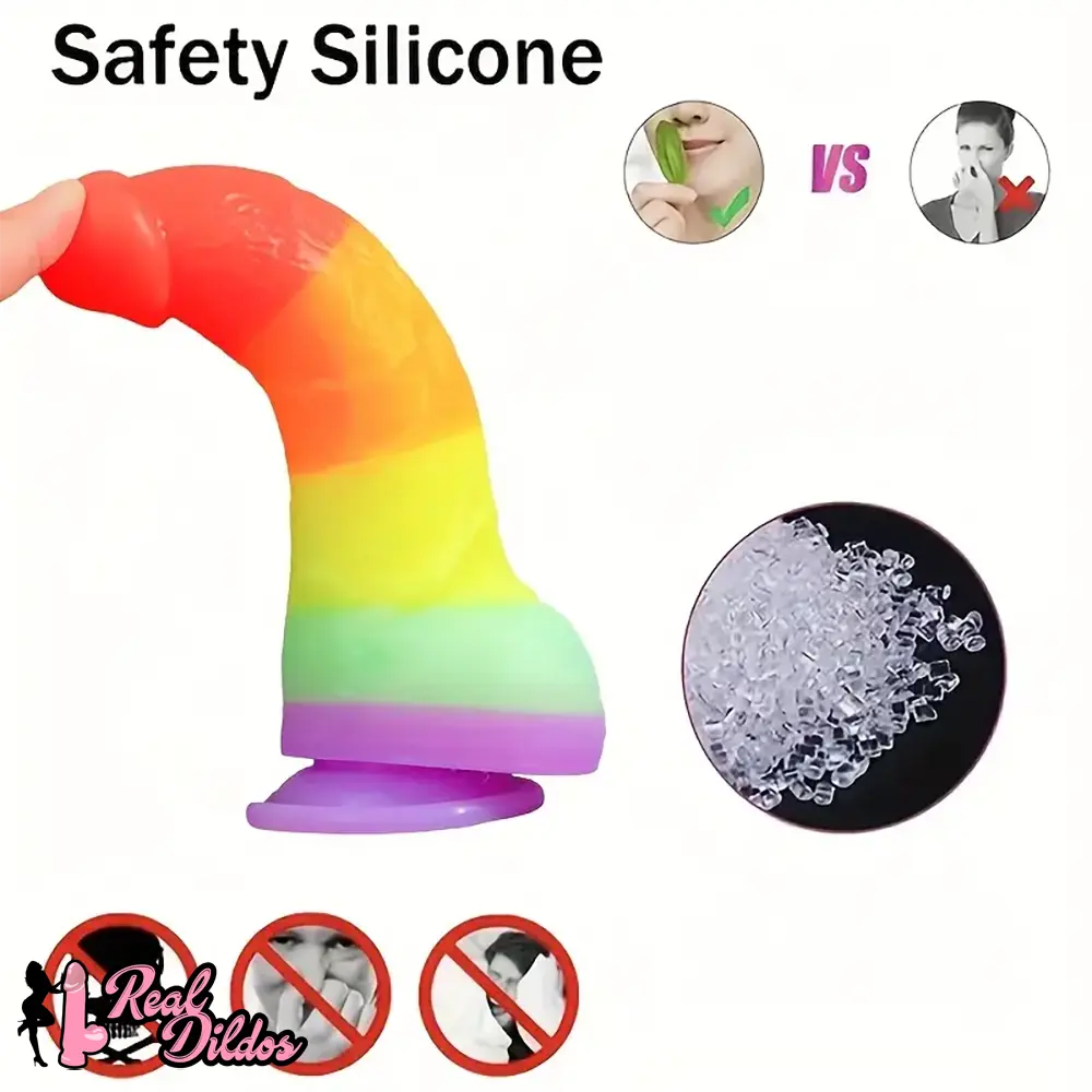 6.89in Silicone Rainbow Soft Realistic Design Harness Compatible Dildo