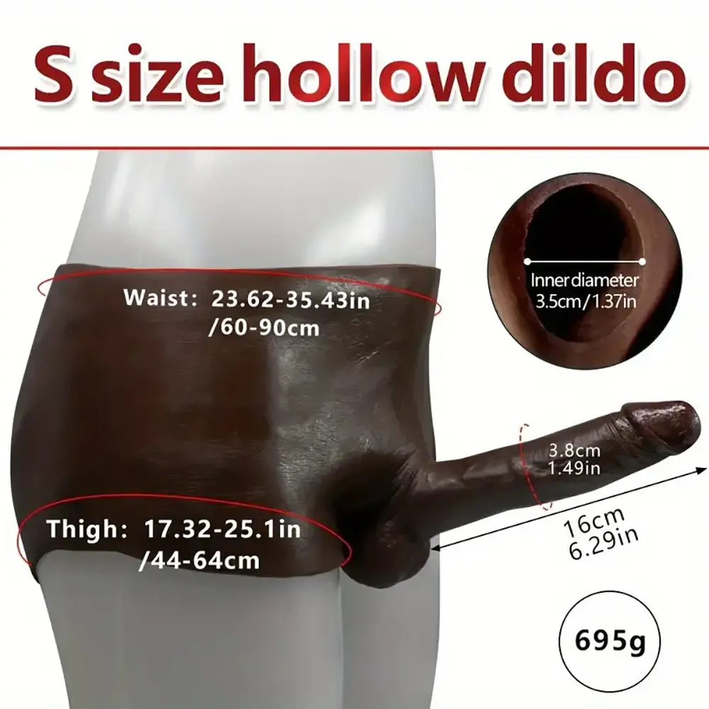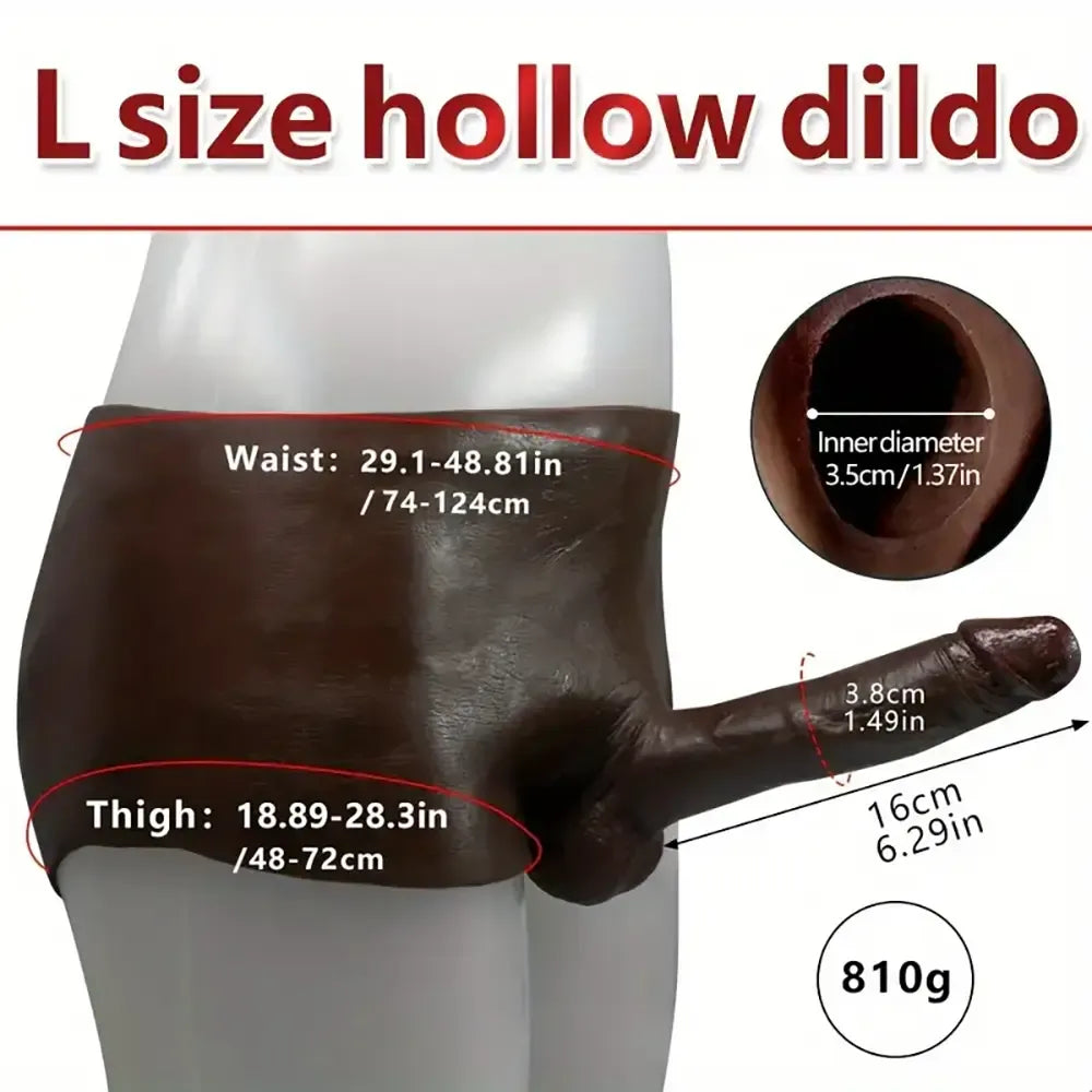 6.29in Wearable Silicone Ebony Solid Hollow Dildo Pants With Builtin Skeleton