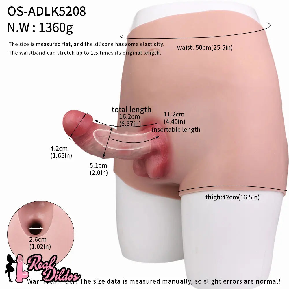 6.37in Wearable Silicone Cock Dildo Pants Real Skin with Hollow Cock Sleeve