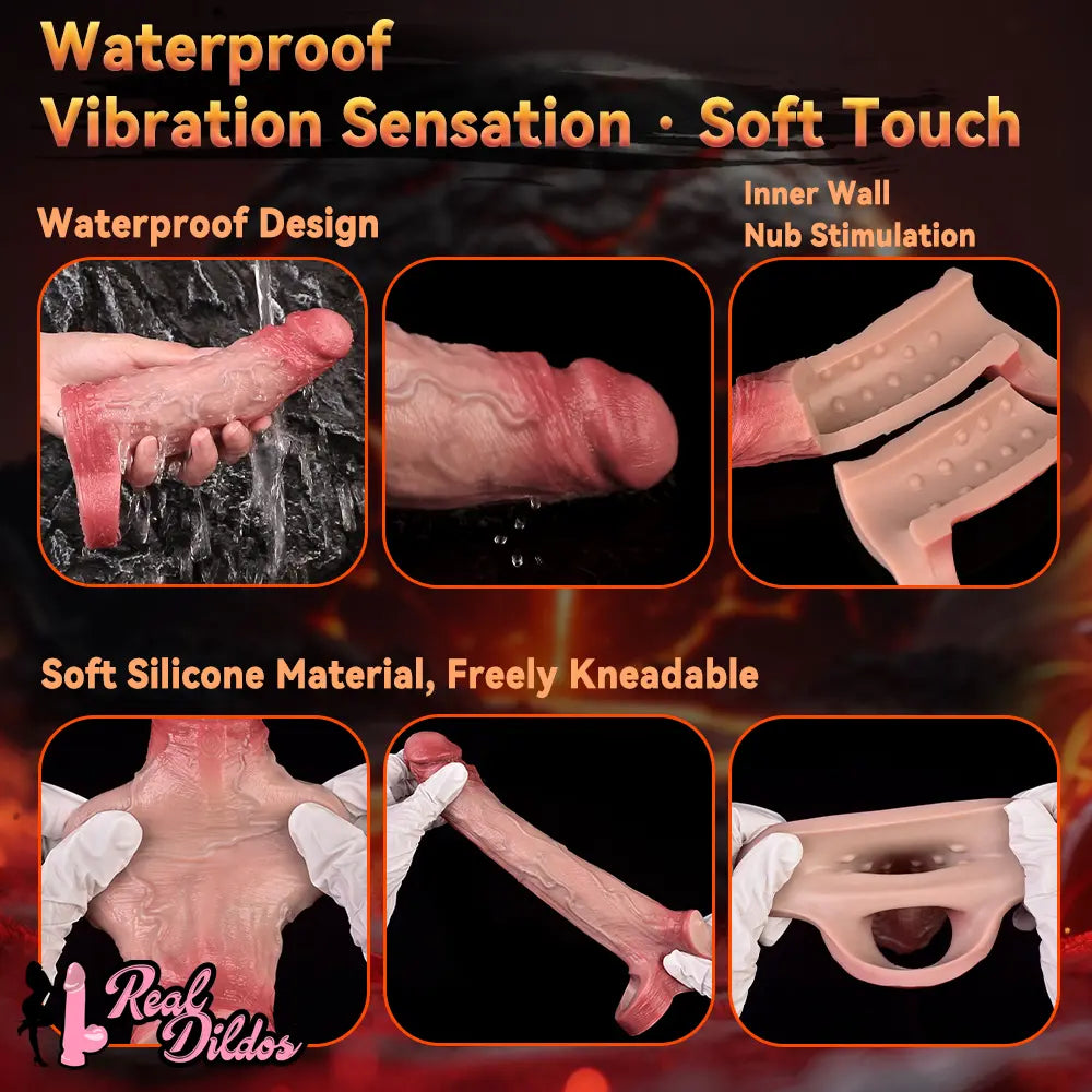 6.3in Vibrating Realistic Remote Silicone Hollow Dildo Sleeve Cock Extender