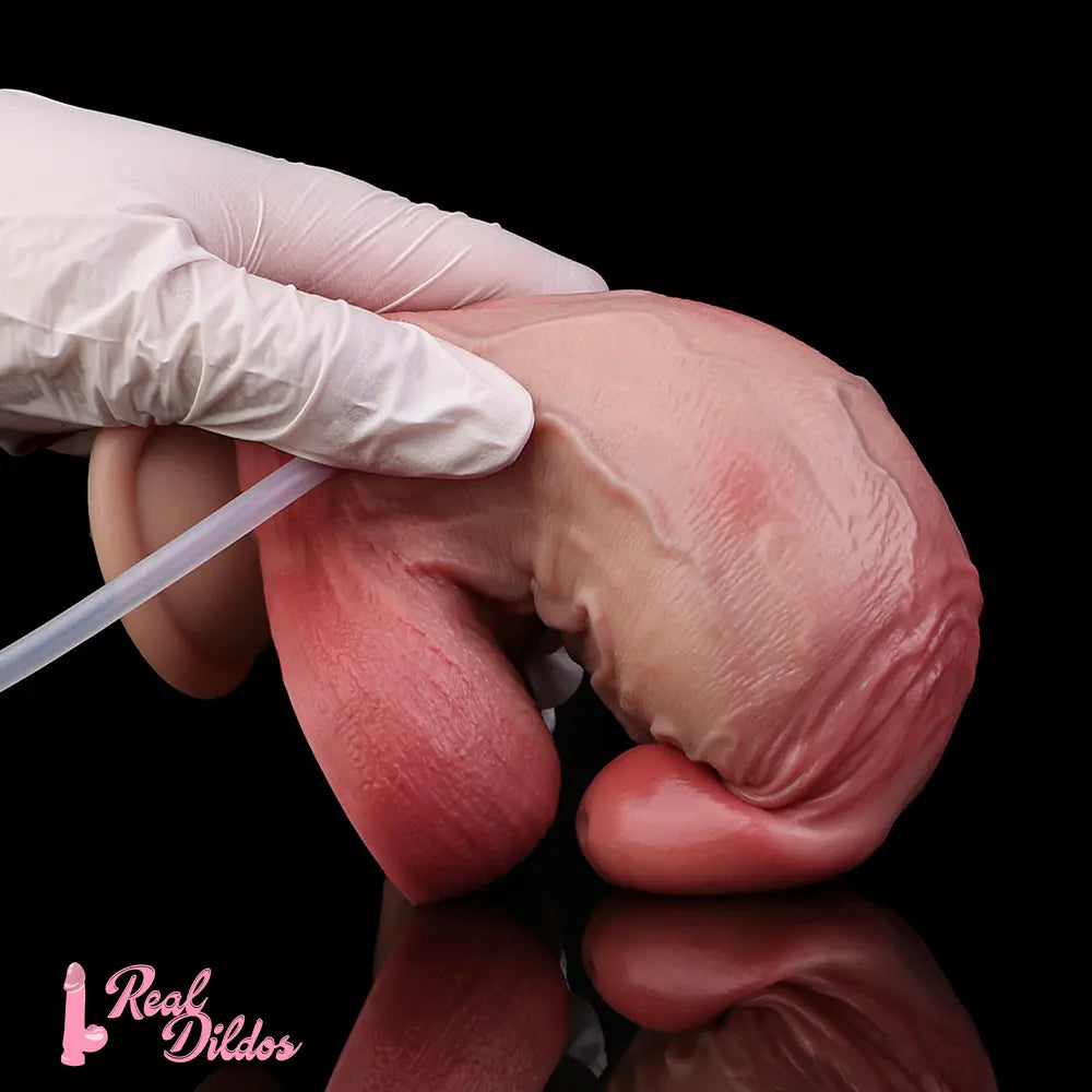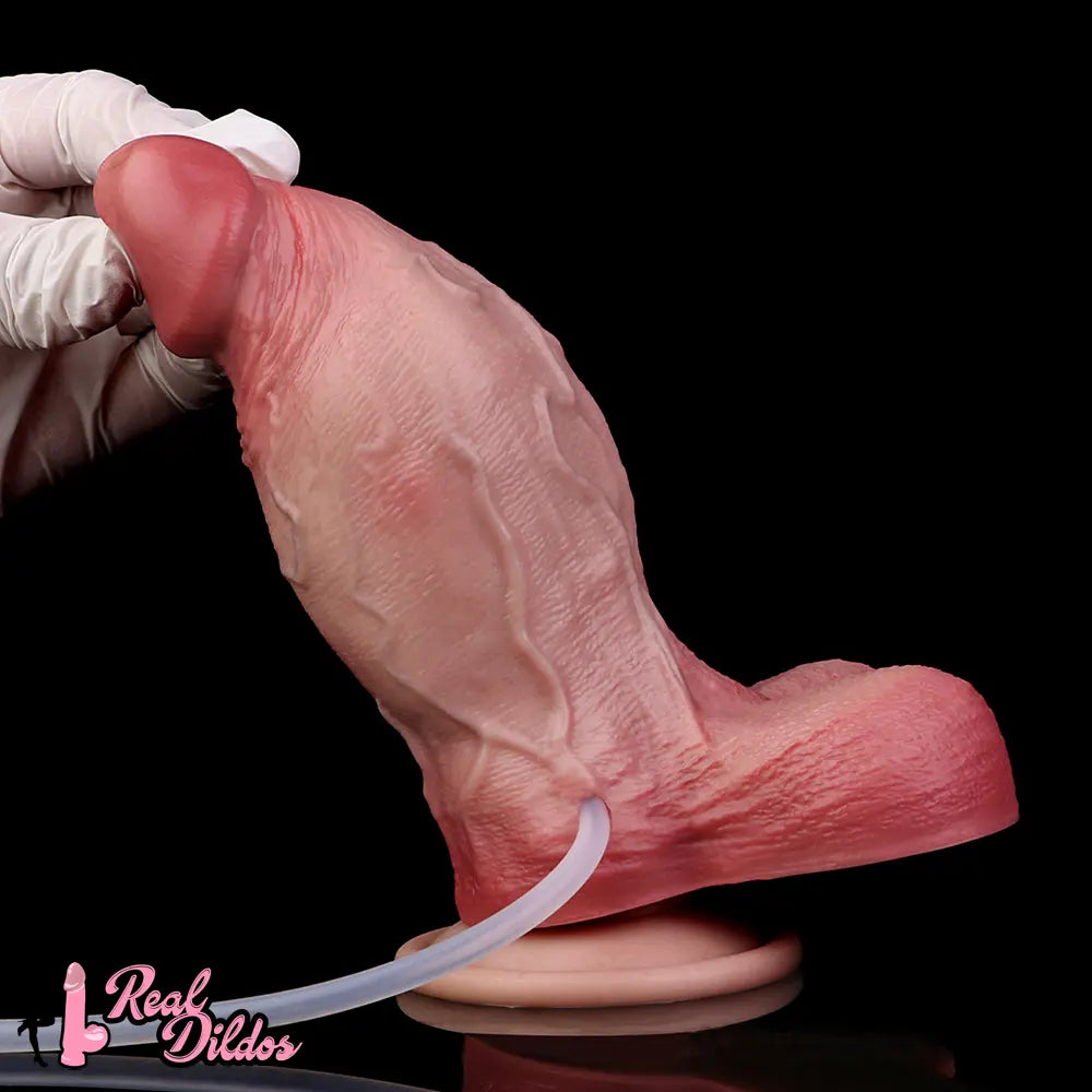 6.5in Liquid Thick Fat Real Silicone Double Layer Realistic Cumming Dildo