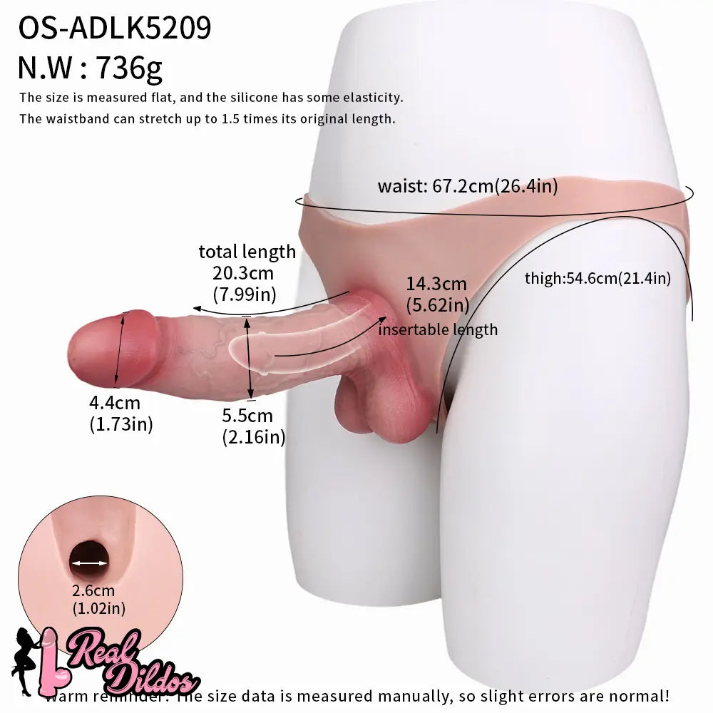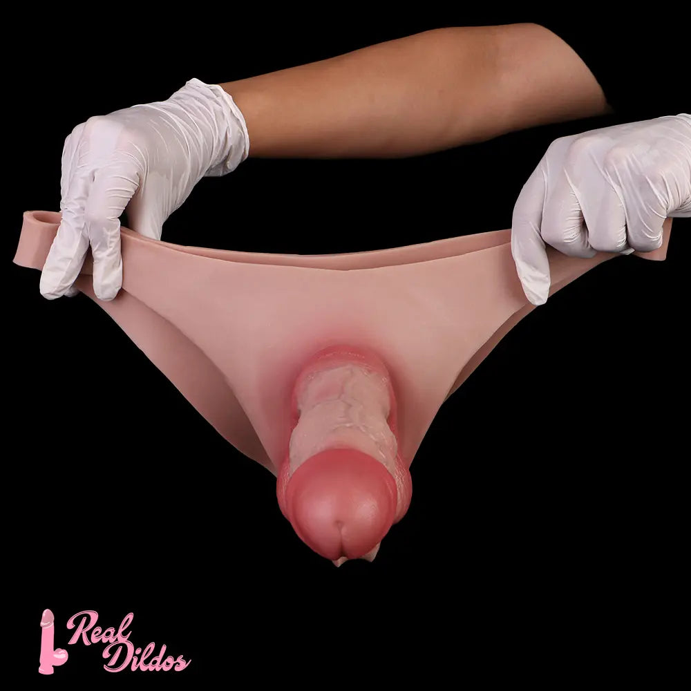 7.99in Wearable Silicone Lifelike Dildo Pants Real Skin Hollow Cock Sleeve