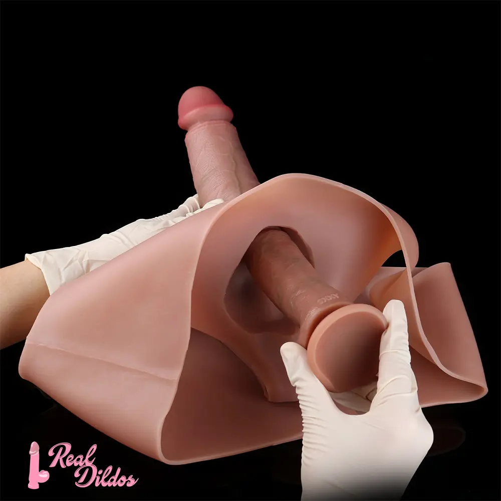 8.07in Hollow Penis Dildo Sleeve Silicone Soft Pants For Penis Thicken Supplies