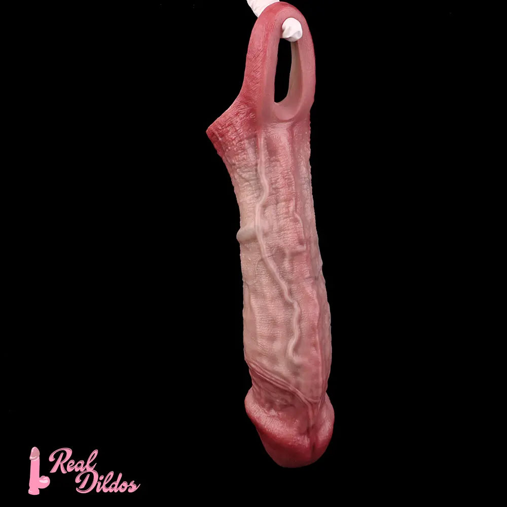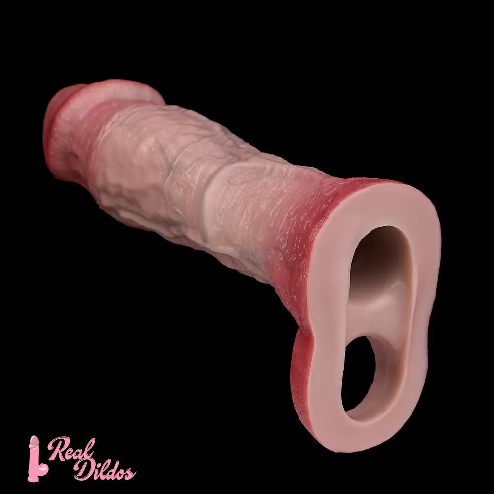 8.82in Blue Veins Hollow Dildo Cock Sleeve With Cock Ring For Vagina Sex