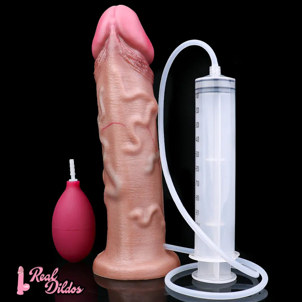 9.84in Double Density Silicone Soft Ejaculating Dildo For Clit Masturbation