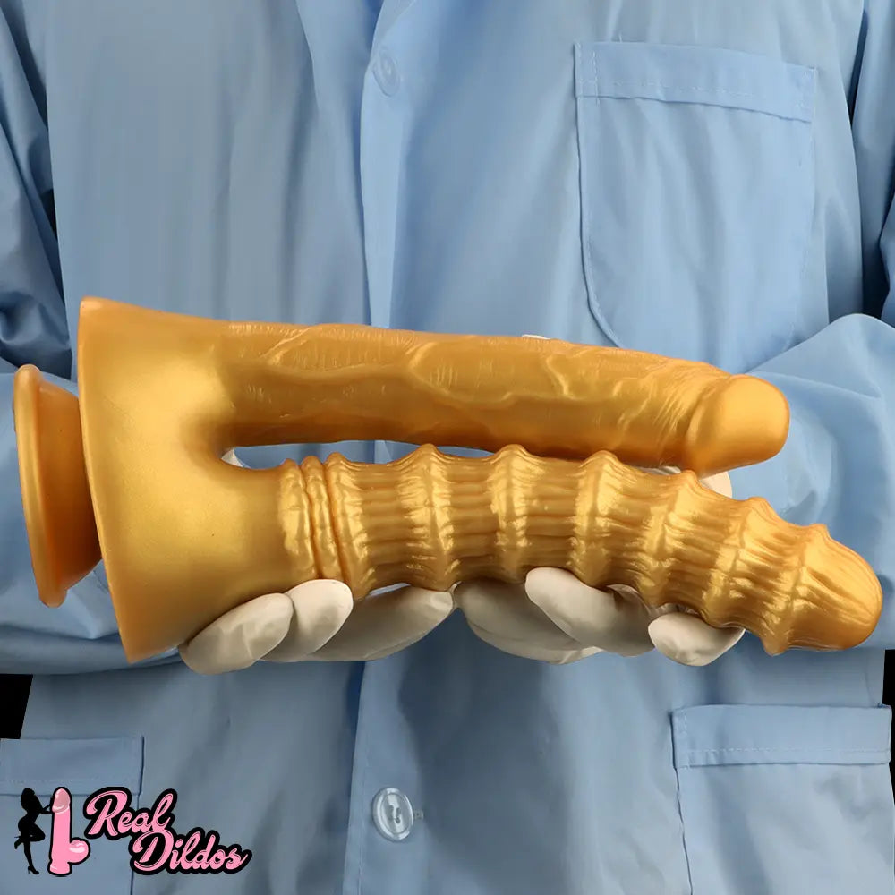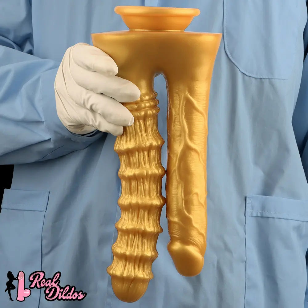 10.82in Big Silicone Soft Gold Double-headed Dildo For Female Lesbian