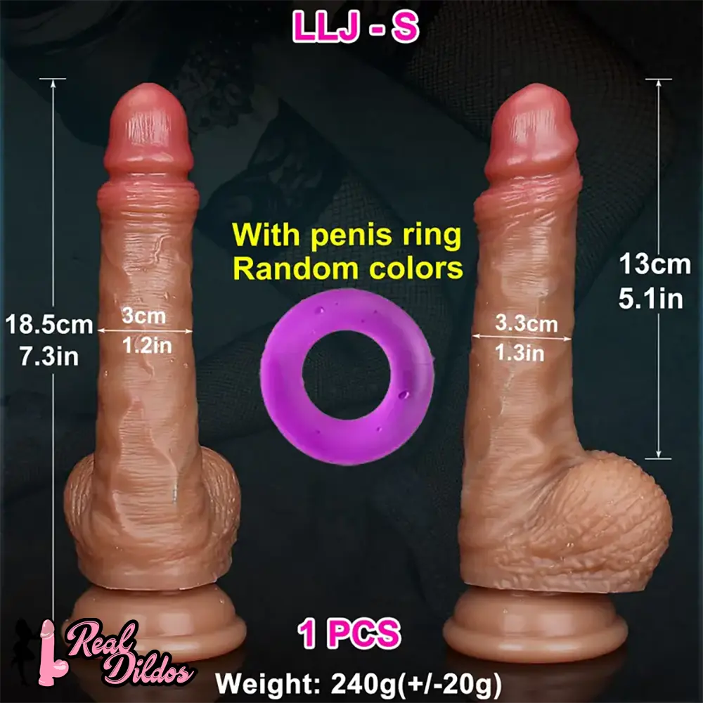 7.3in 8.6in Soft Realistic Adult Brown Cock Double Layer Silicone Dildo