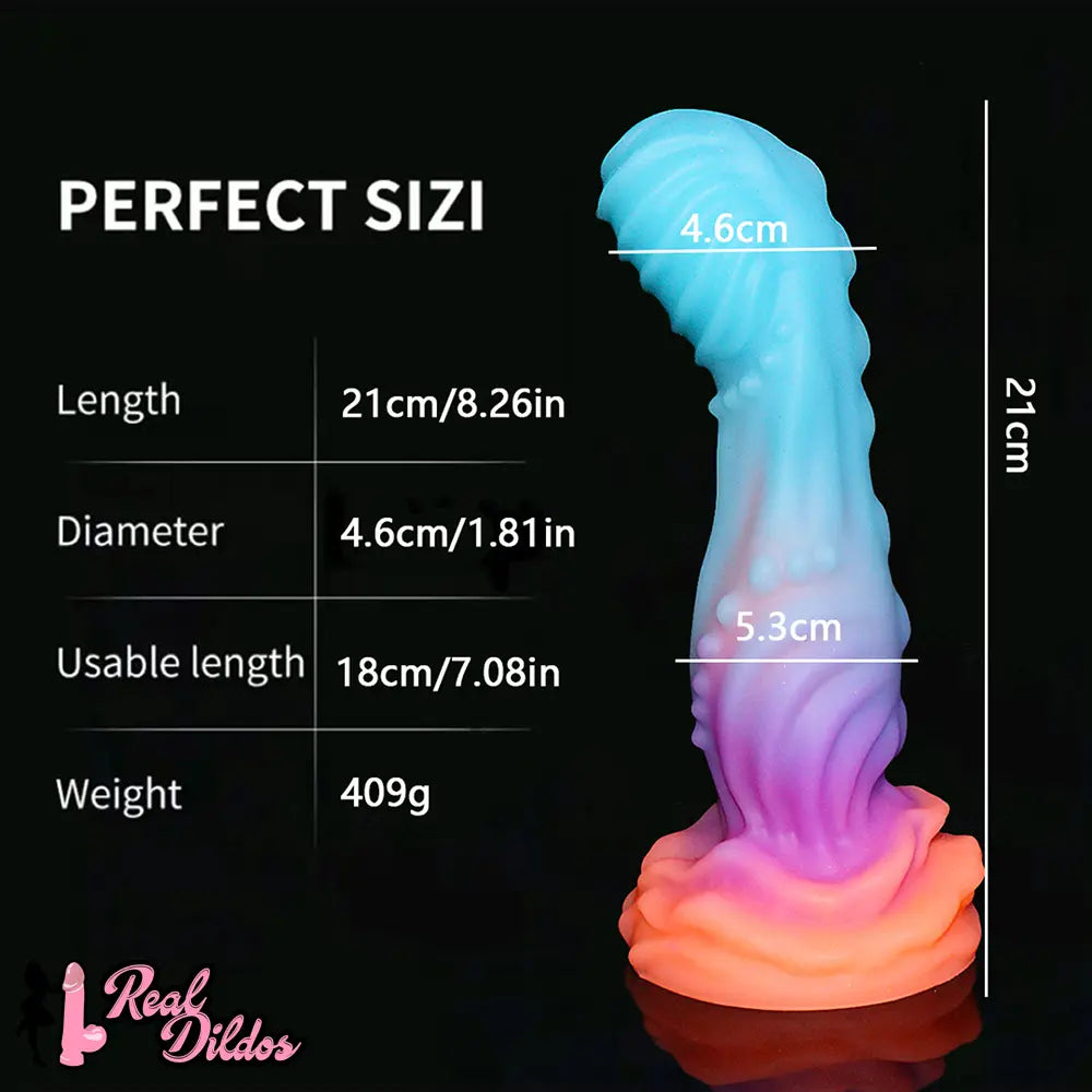 8in Luminous Fantasy Silicone Soft Big Dildo Manual Climax Bed Cock Toy