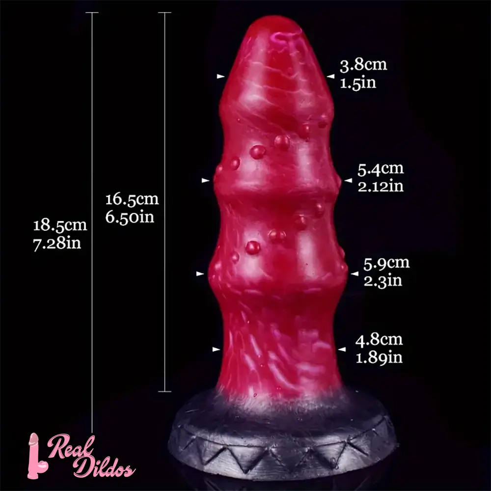 7.28in Liquid Silicone Fantasy Thread Convex Spiked Soft Thick Dildo