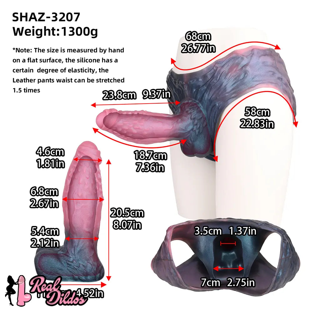 9.37in Spiked Monster Hollow Dildo Harness Pants Strap on Big Cock