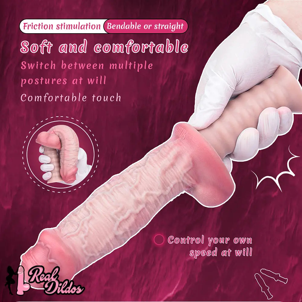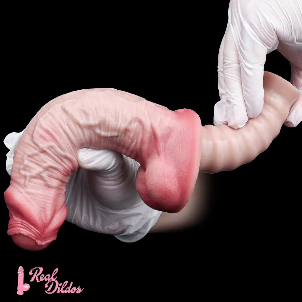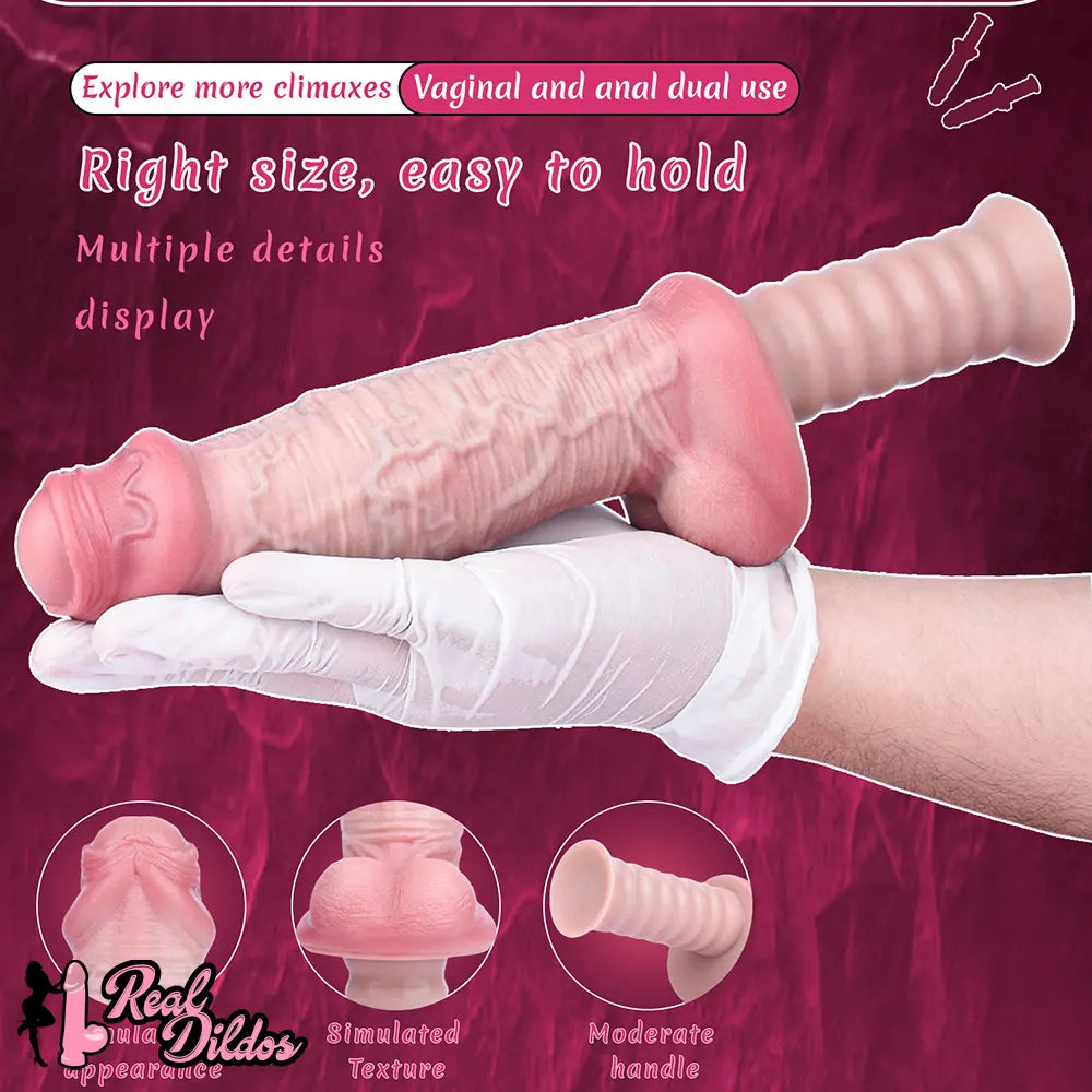 11.29in Real Feeling Uncut Double Layer Silicone Soft Handle Dildo For Sex