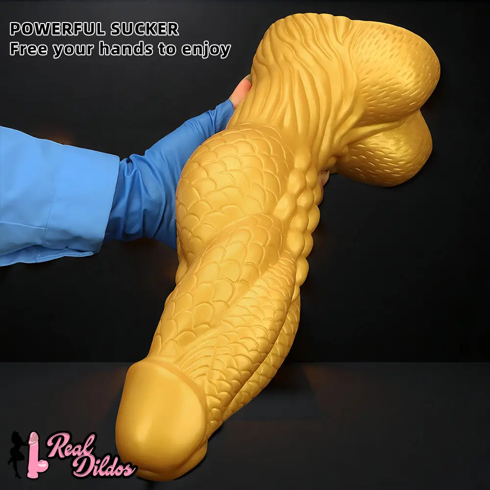 14.56in Gold Silicone Dragon Soft Big Long Realistic Design Thick Dildo