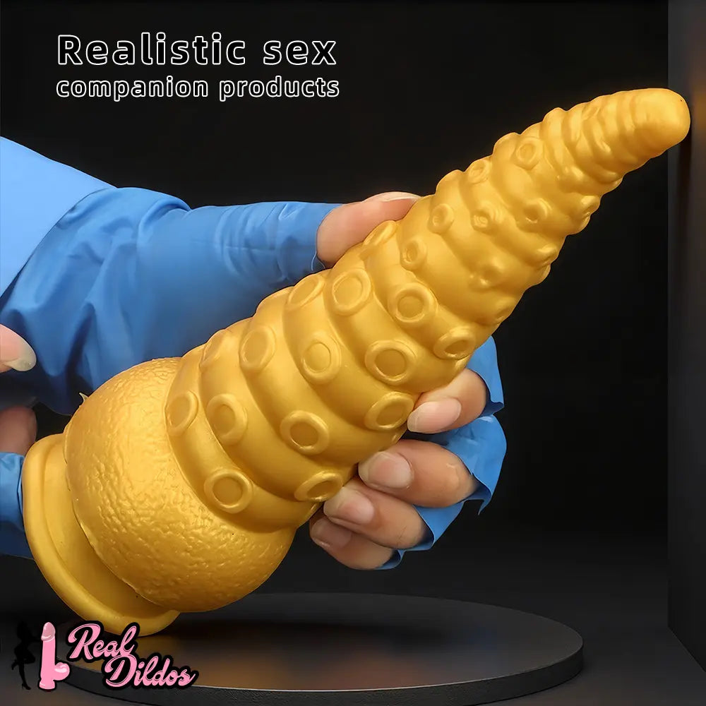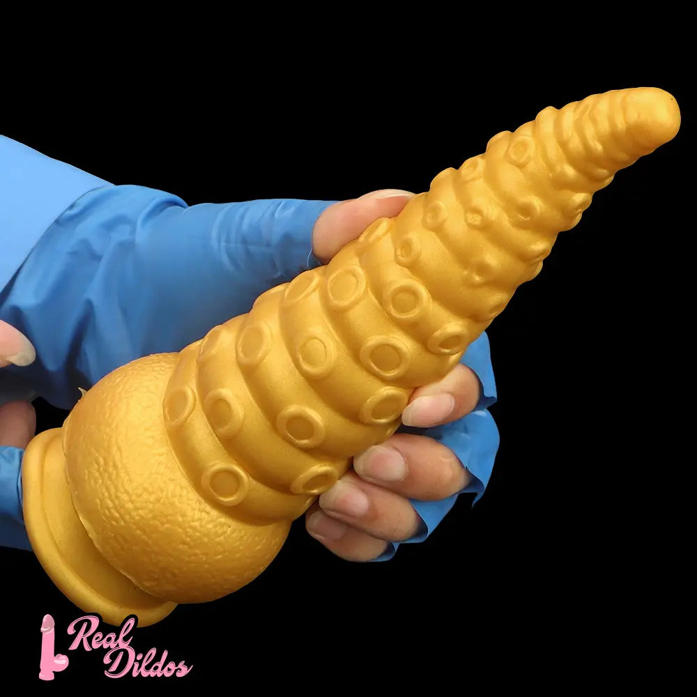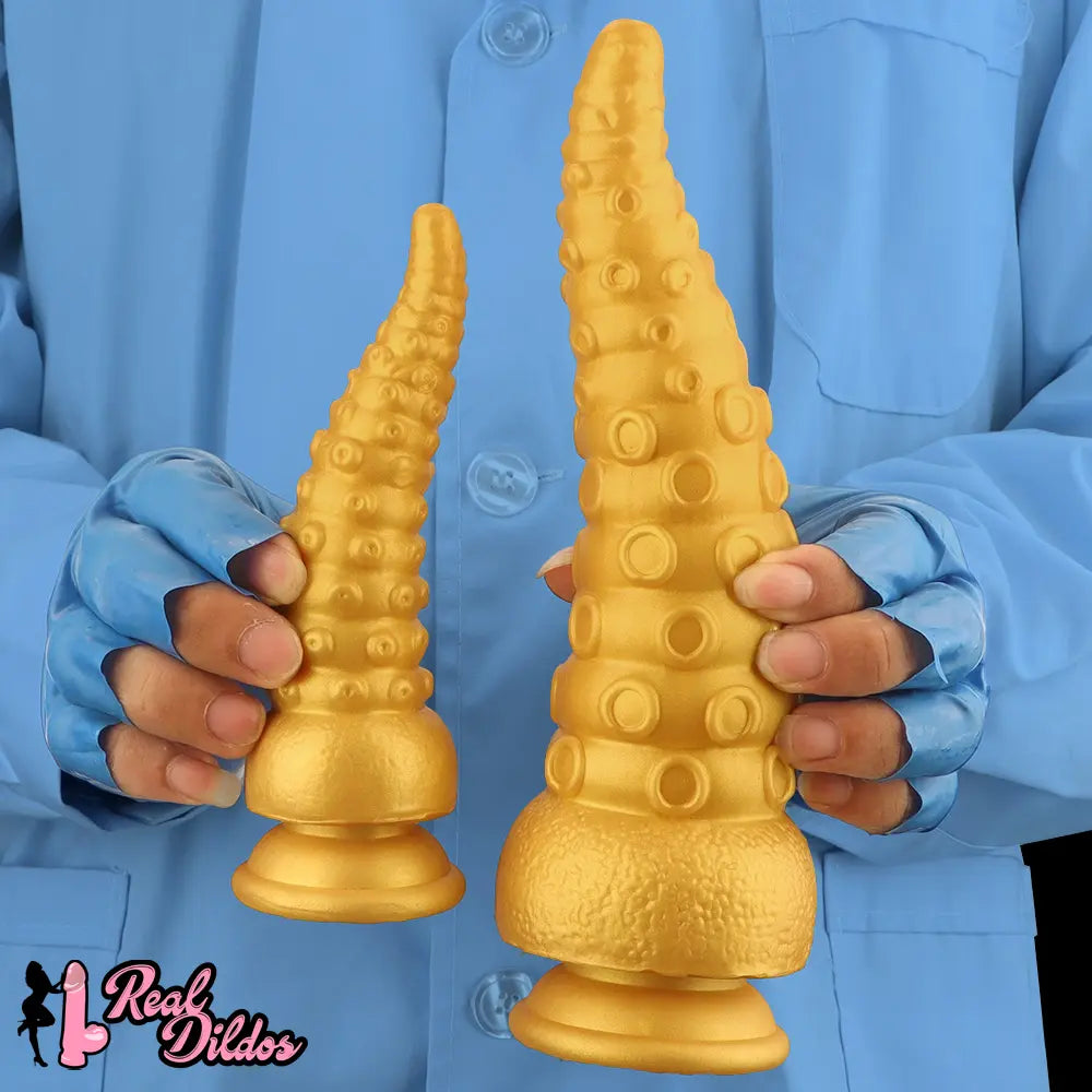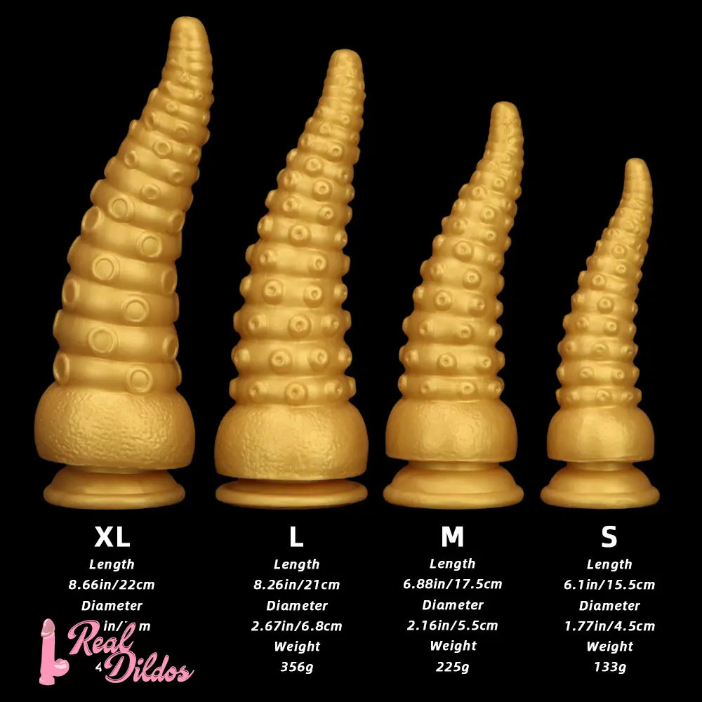 6.1in 6.88in 8.26in 8.66in Gold Silicone Multi-size Octopus Thick Dildo
