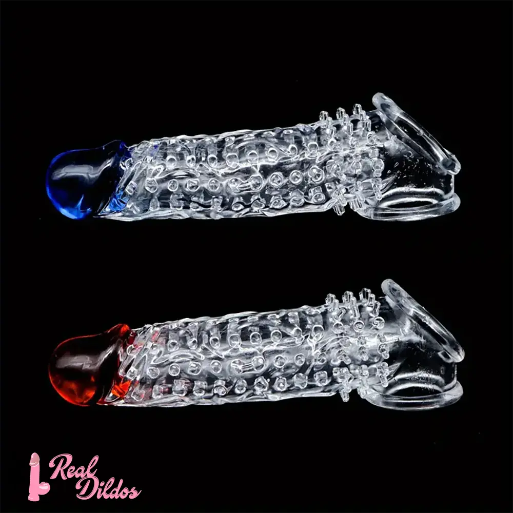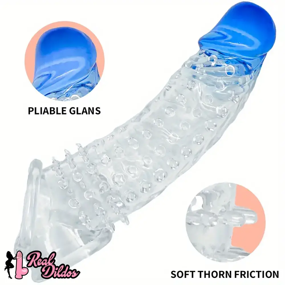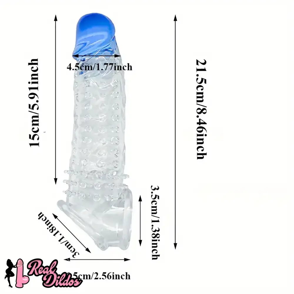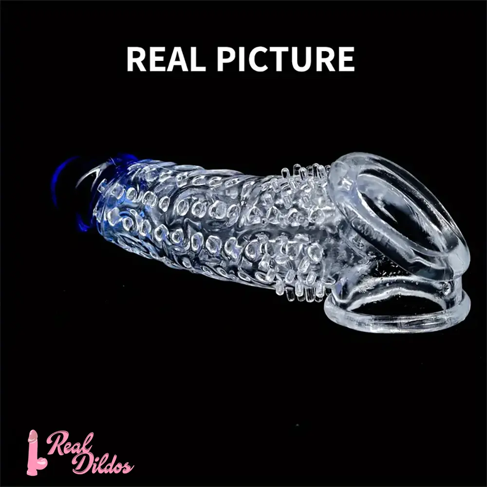 8.46in Clear Anatomy Big Spiked Cock Sleeve Dildo For Enlargement