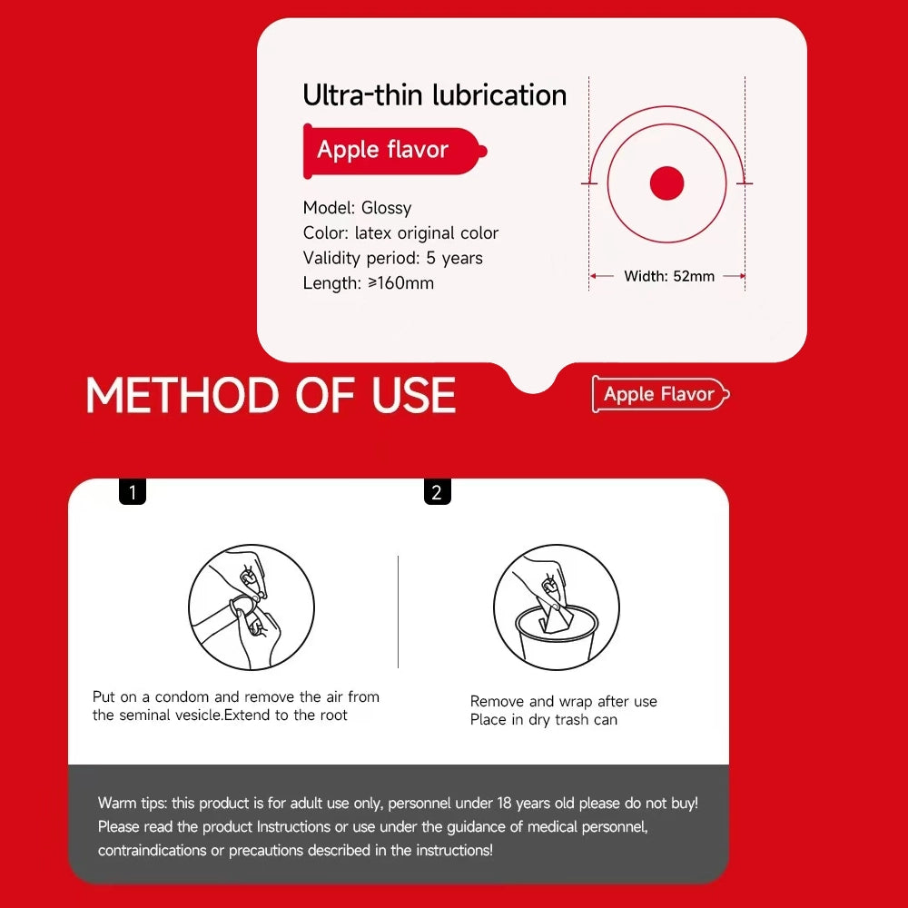 10PCS Ultra Thin Sweet Fruity Moist No Rinse Condom For Men