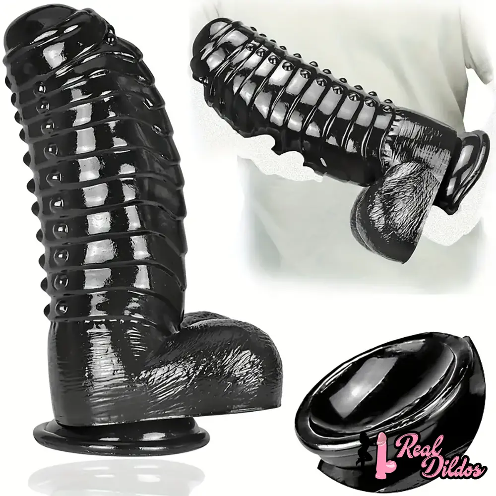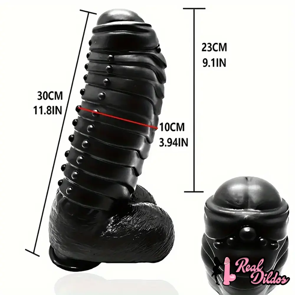 11.8in Realistic Big Black Uncut Spiked Thick Dildo For Female Male
