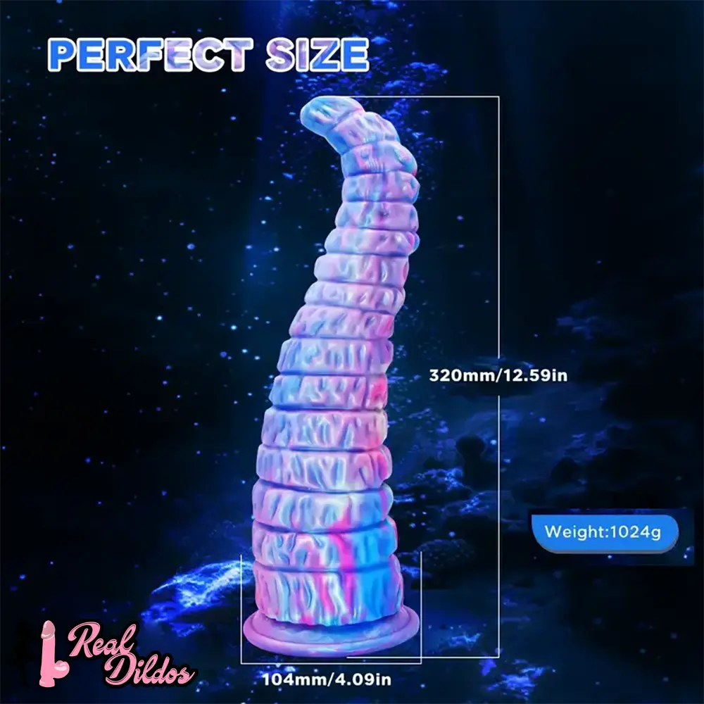 12.59in Monster Silicone Thick Tapered Head Raised Ridge Big Dildo