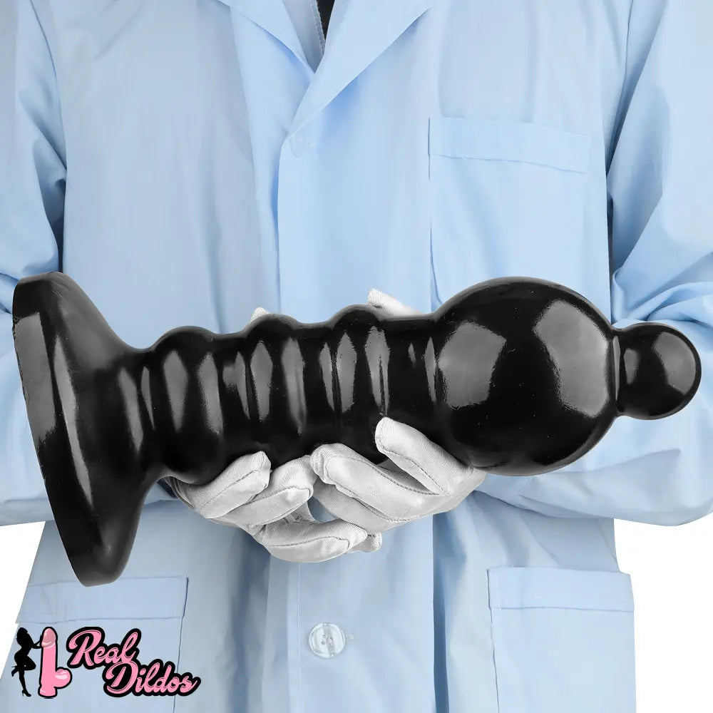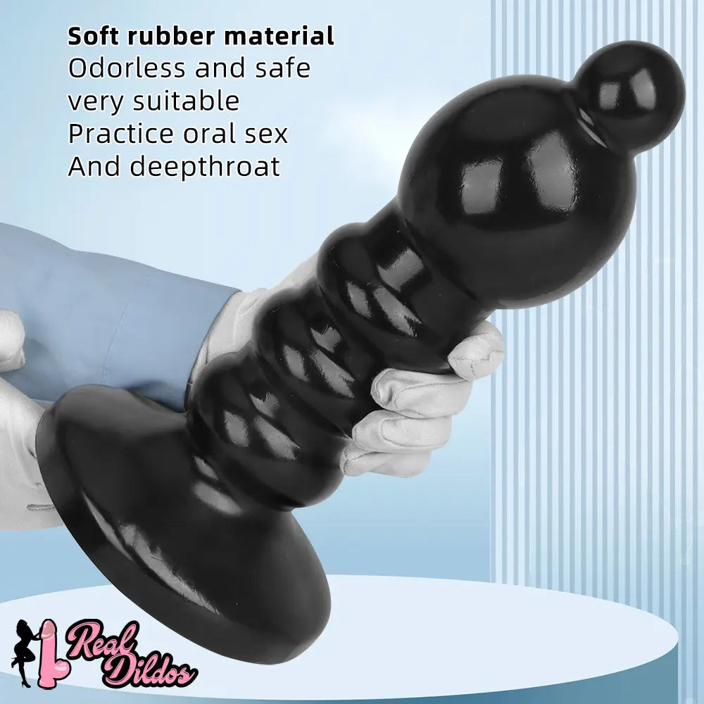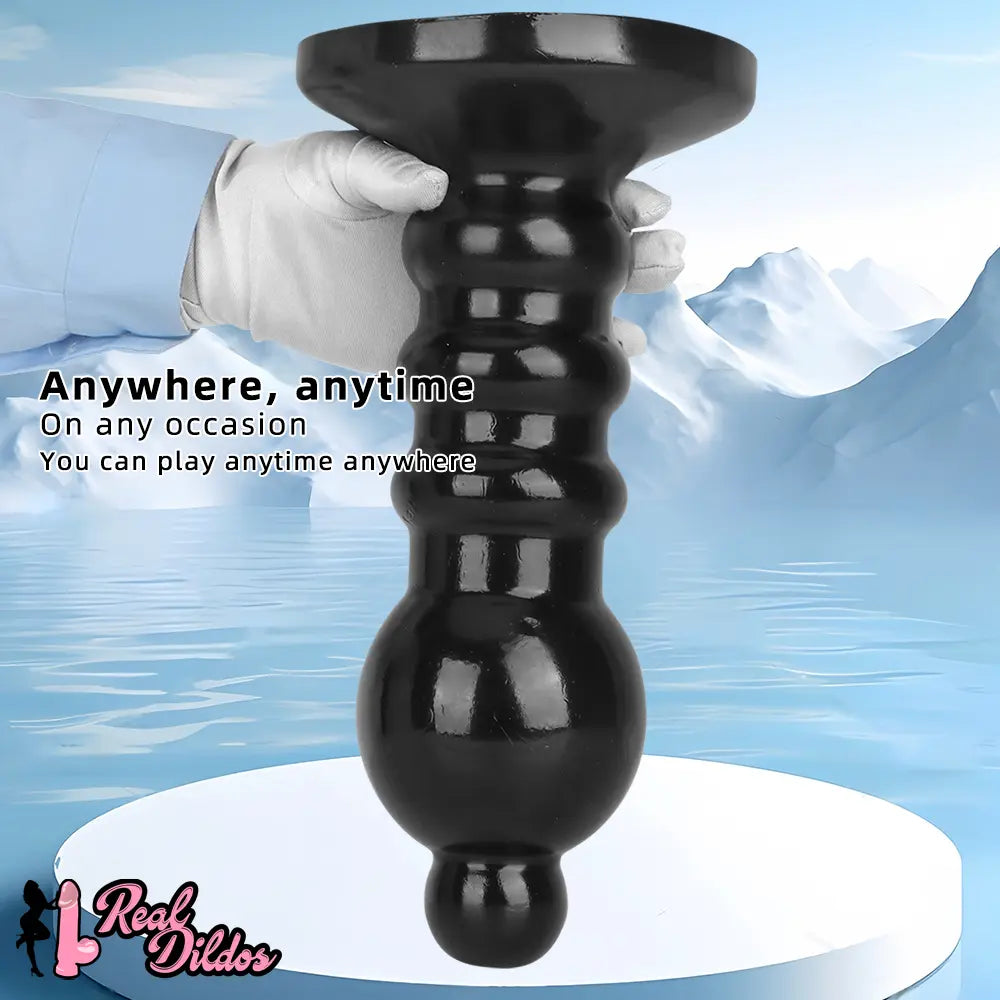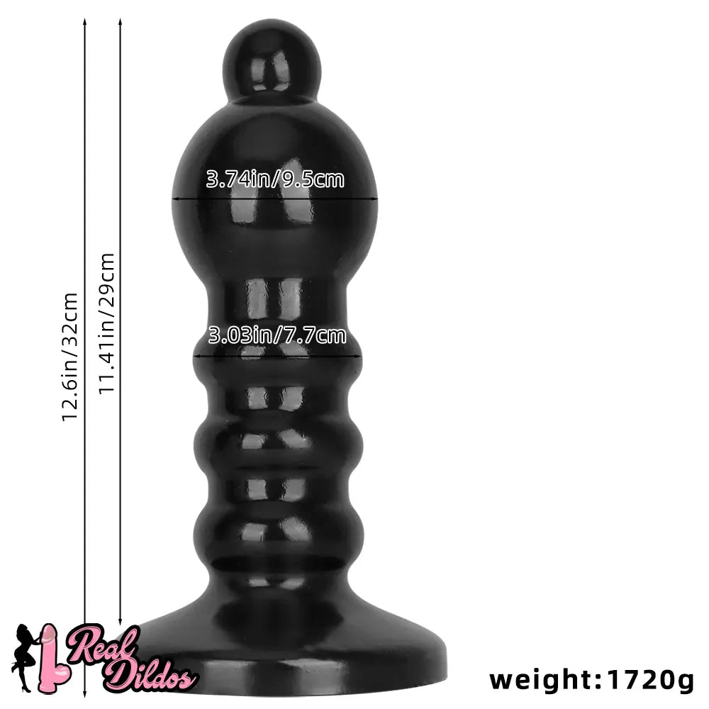 12.6in Black Pull Beads Thick Big Head Penis Anal Plug PVC Dildo