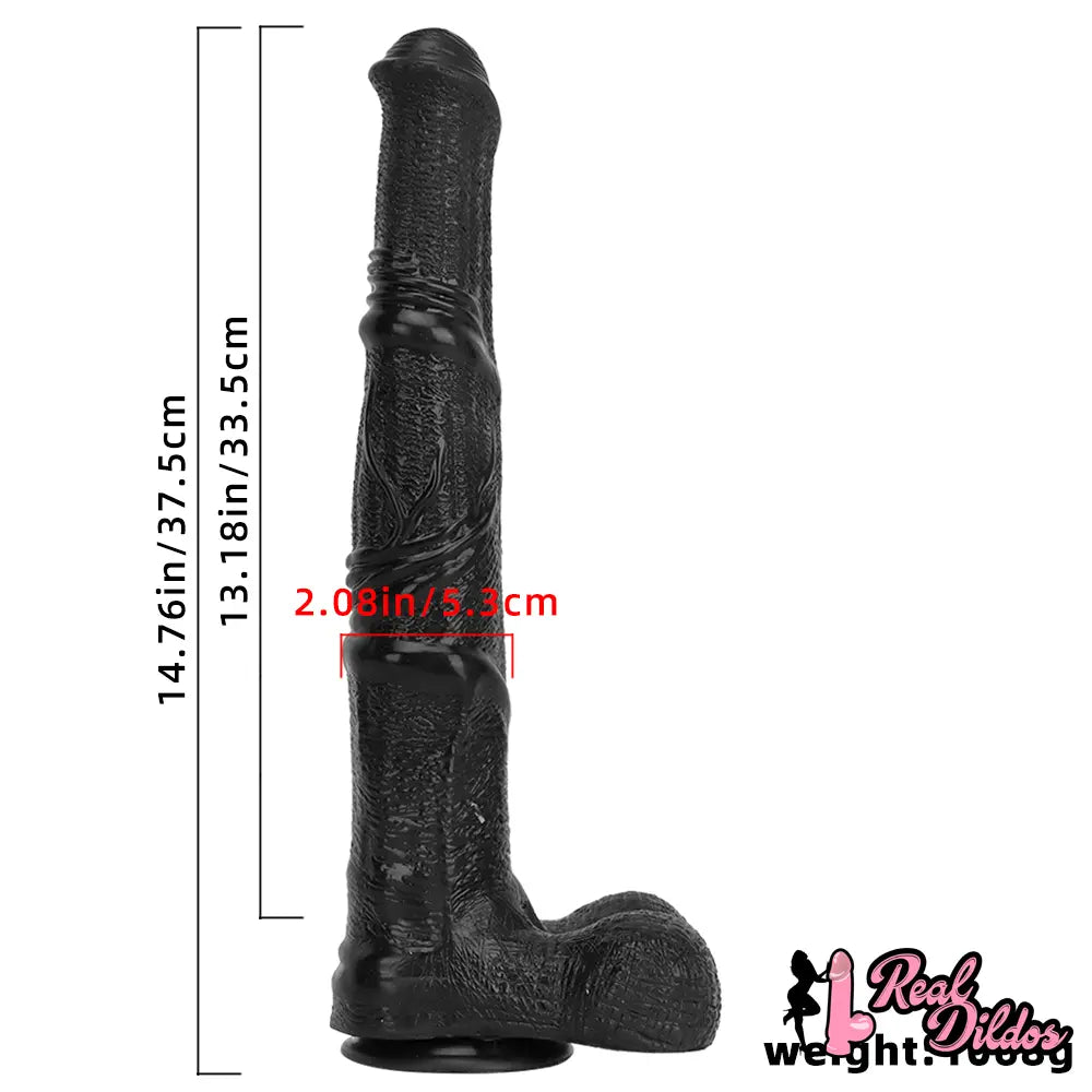 14.76in Extra Long Huge Black PVC Animal Cock Horse Cock Dildo