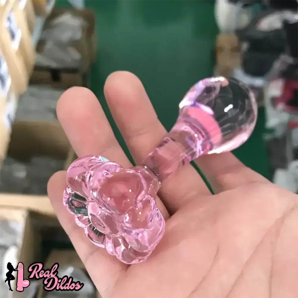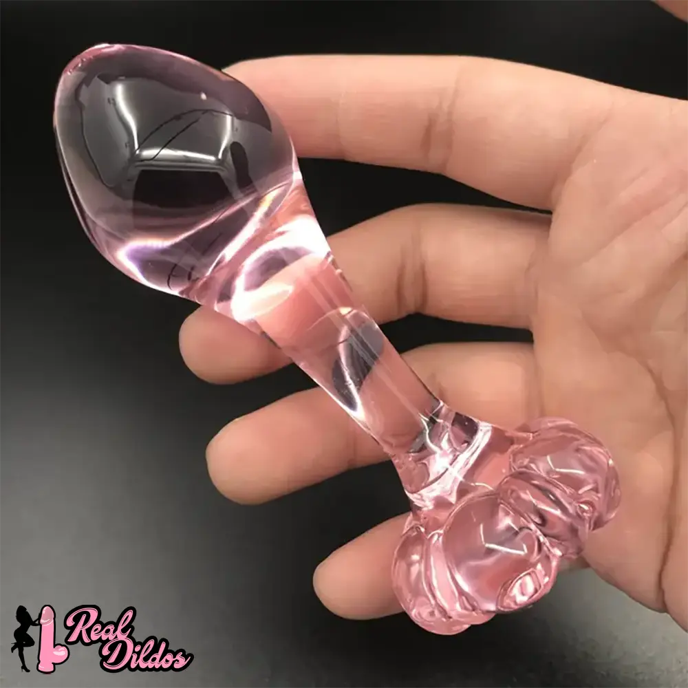 4.1in Small BDSM Glass Flower Bottom Dildo For Women Men Sex Toy