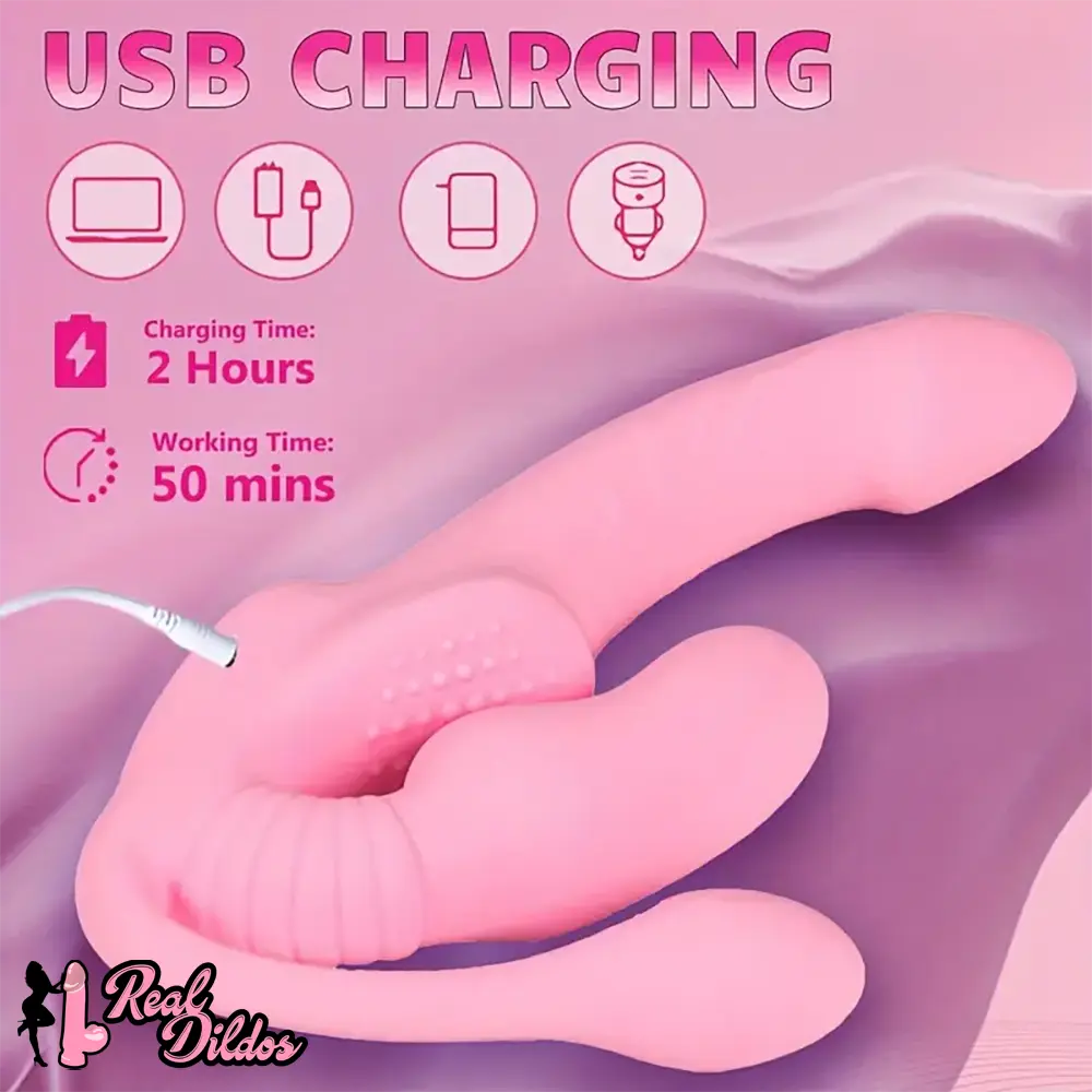 5.12in Triple Ended Silicone Strapless Double Vibrating Massager Dildo