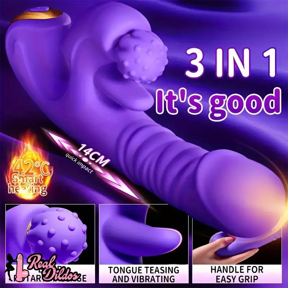 5.51in Triple Dildo Heating Thrusting Impact Rotation Vibrating Dildo