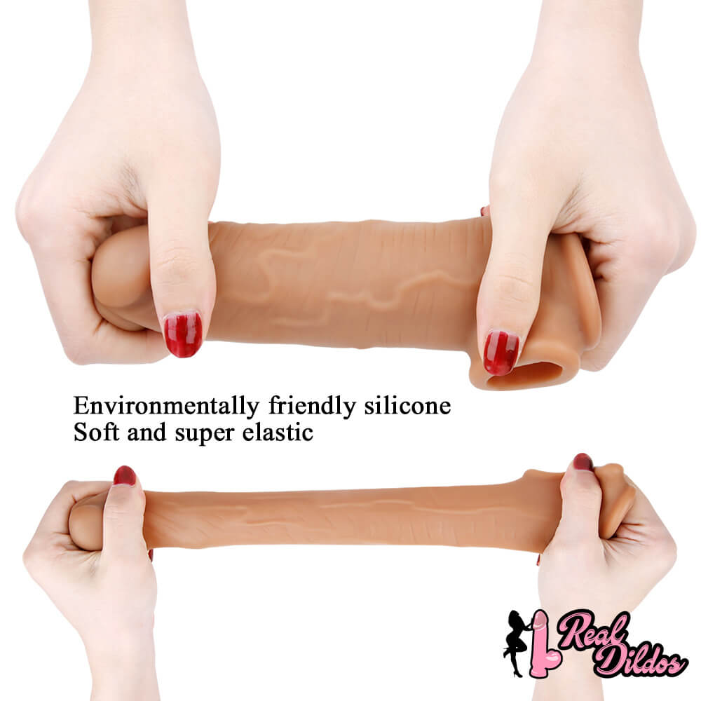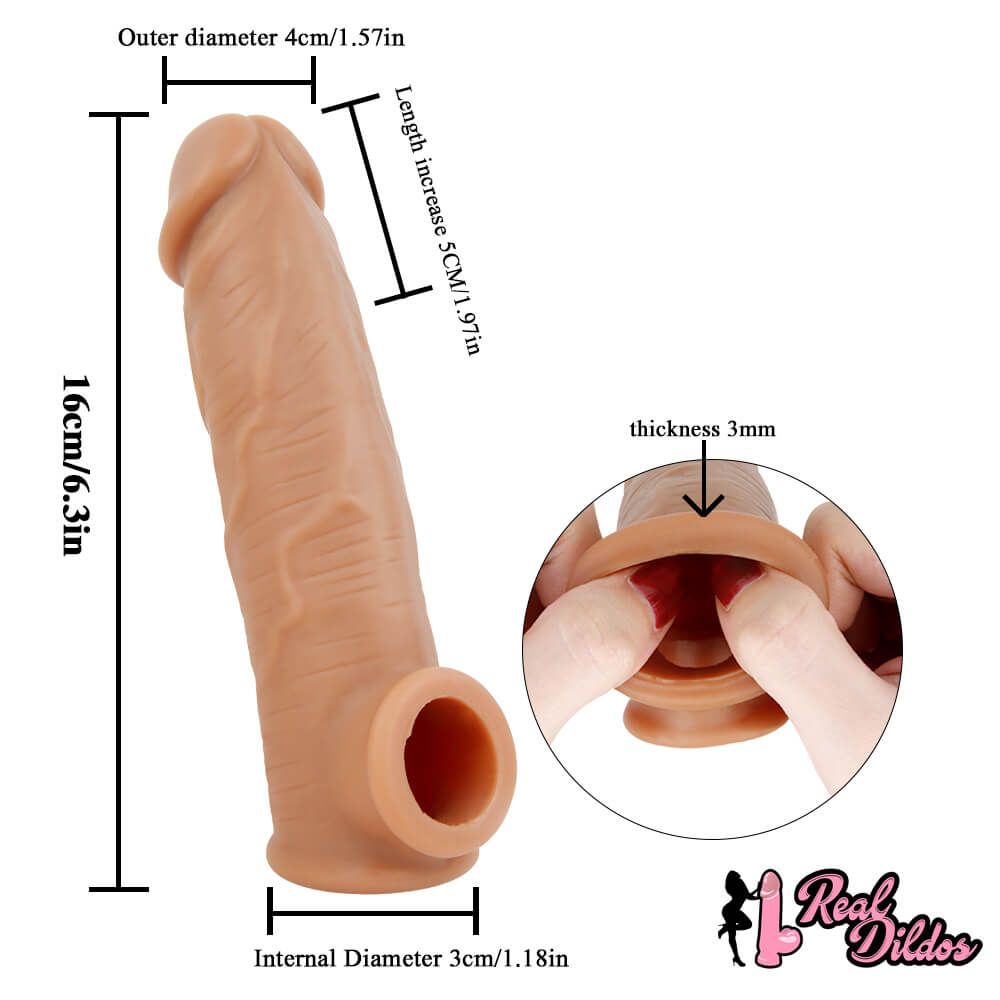 6.3in Lifelike Male Penis Extension Sleeve With Cock Ring Extender